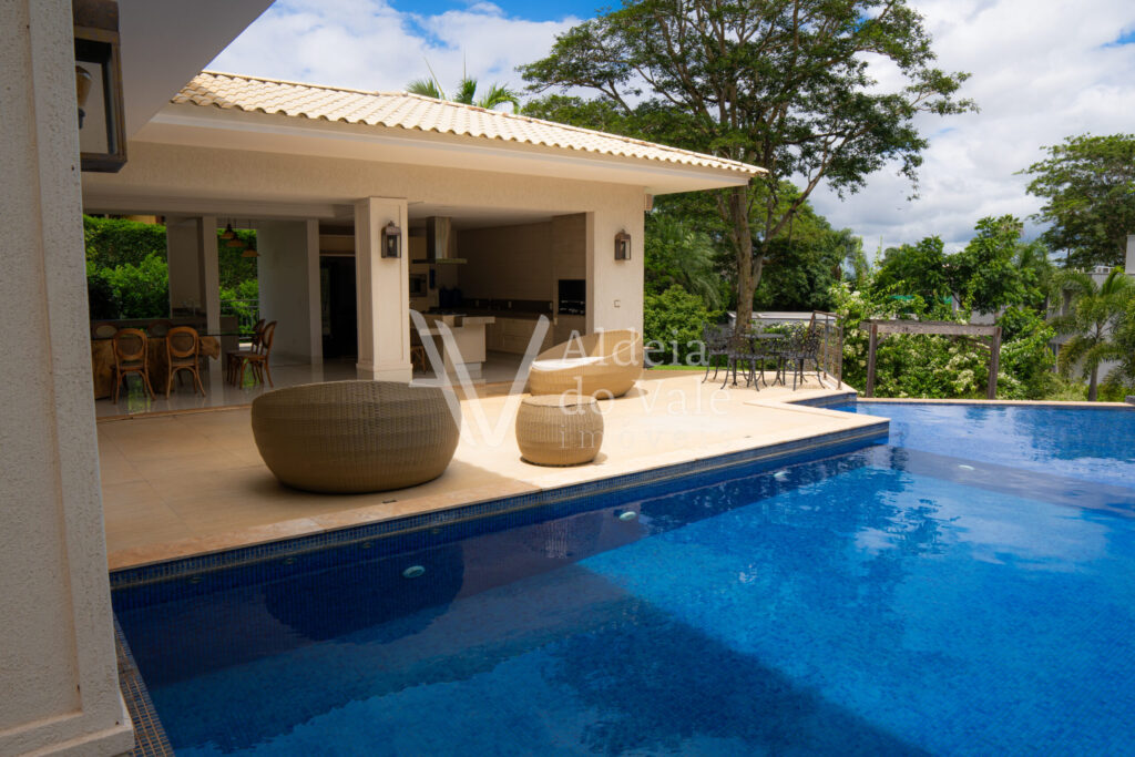 Está localizada em local alto e com uma vista linda, em um lote de 1.490 m², próximo à área de lazer 2, onde ficam a academia e as piscinas de adulto e infantil do condomínio.