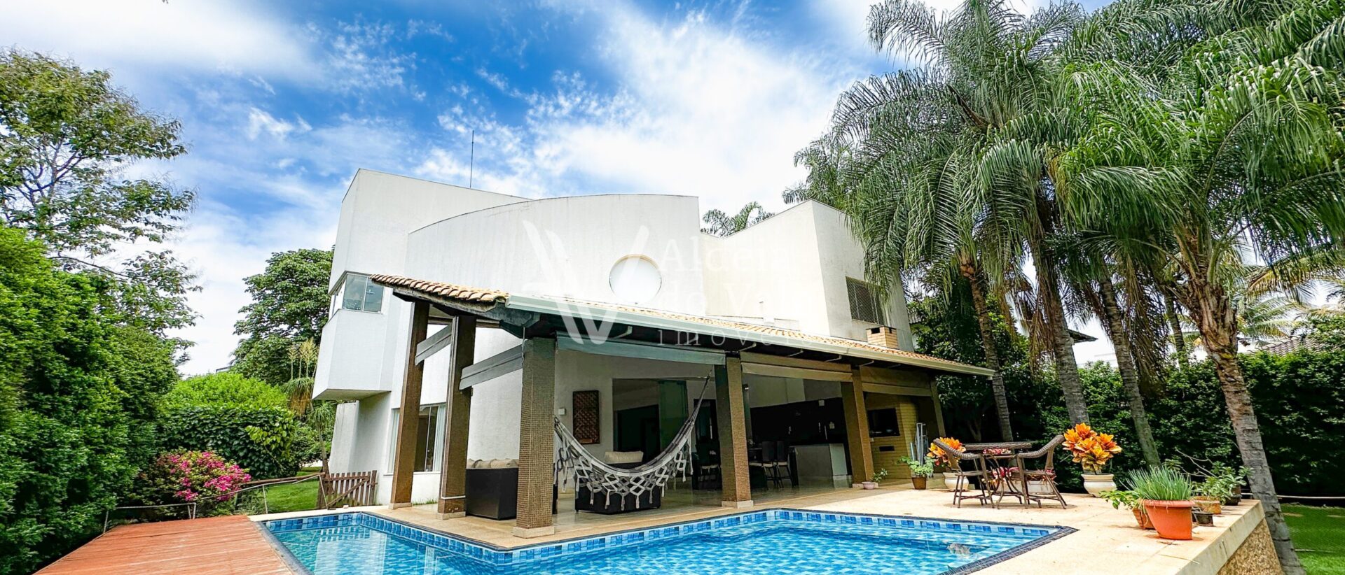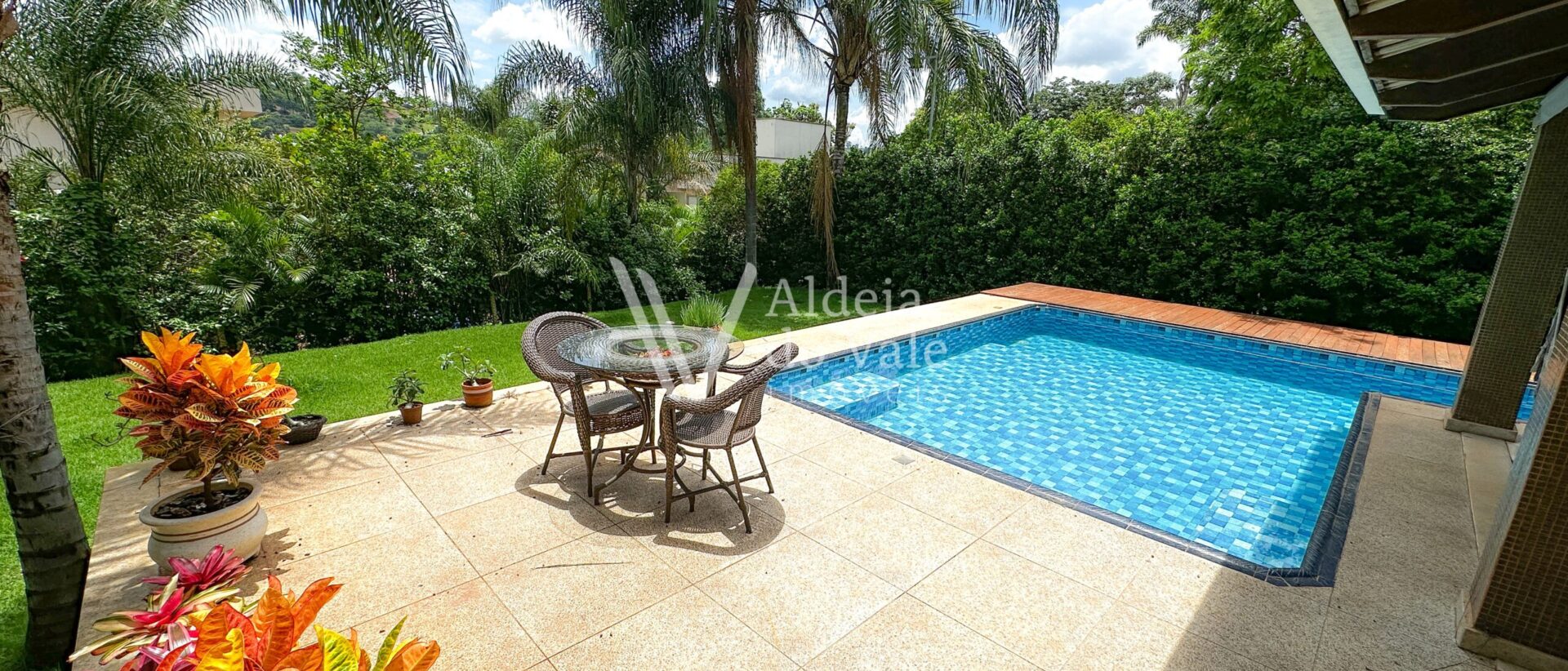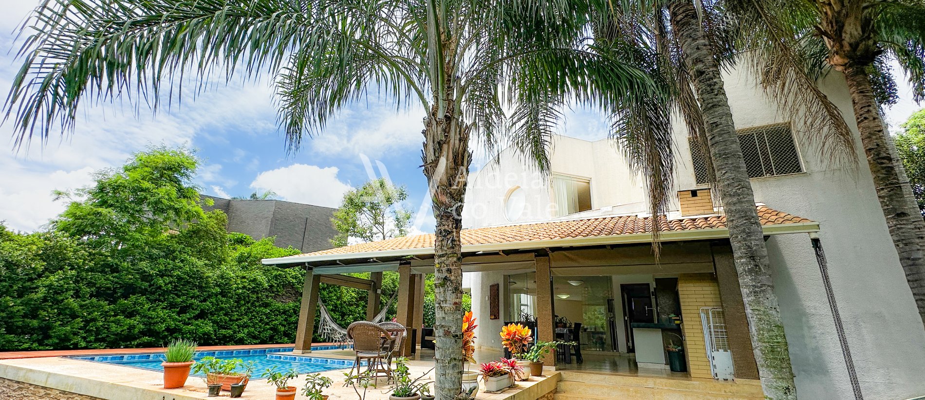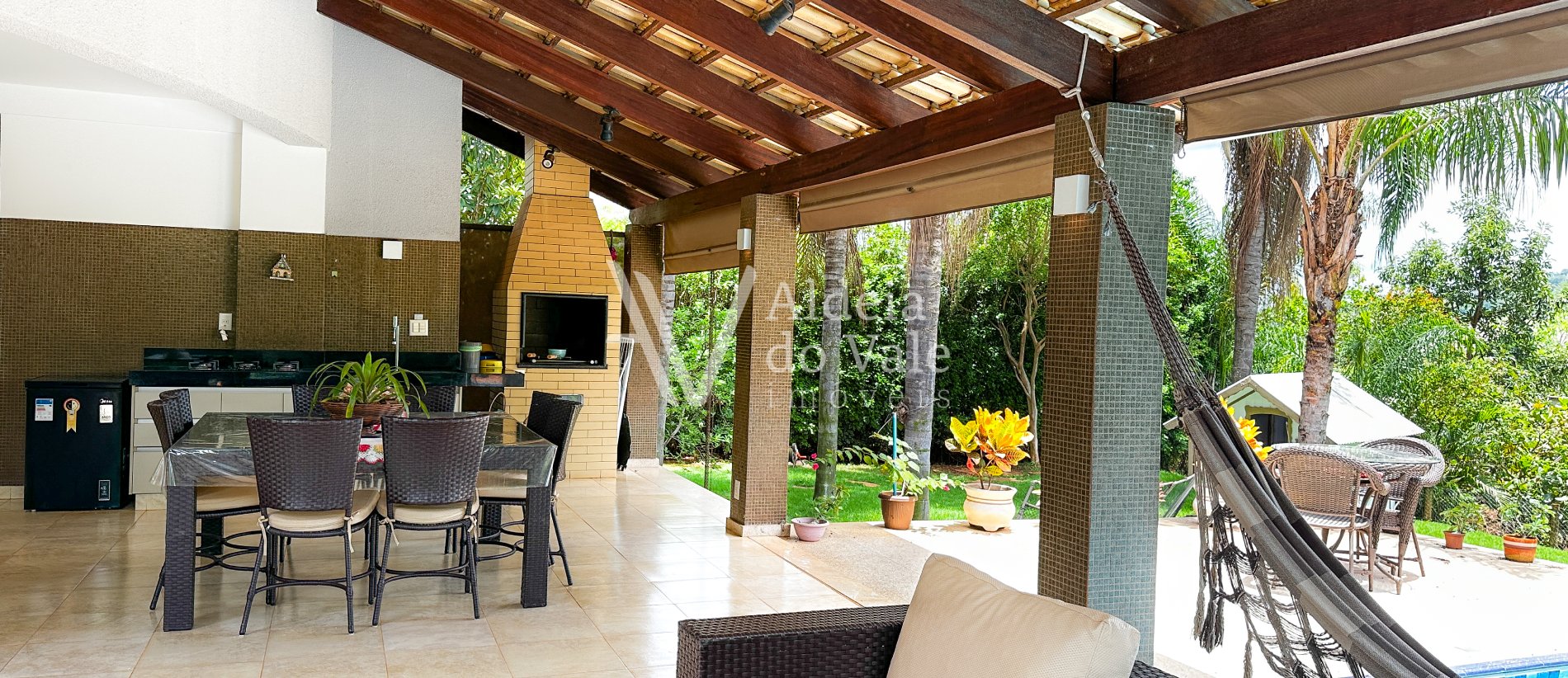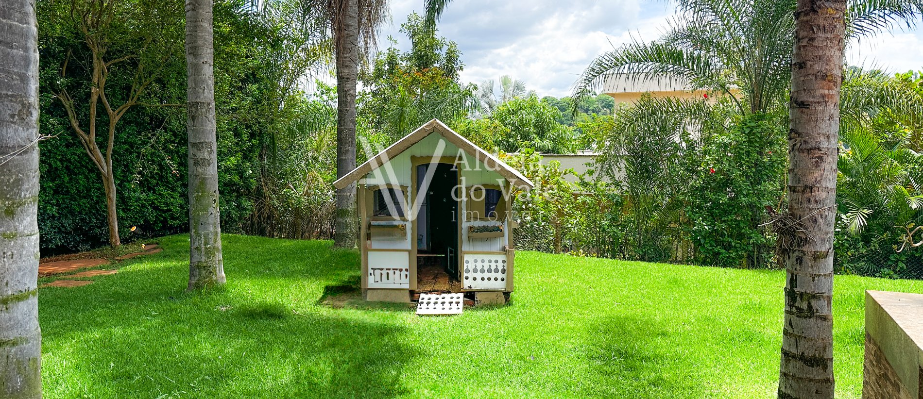 Esse imóvel possui um belo jardim na frente e no quintal, com árvores frutíferas.
