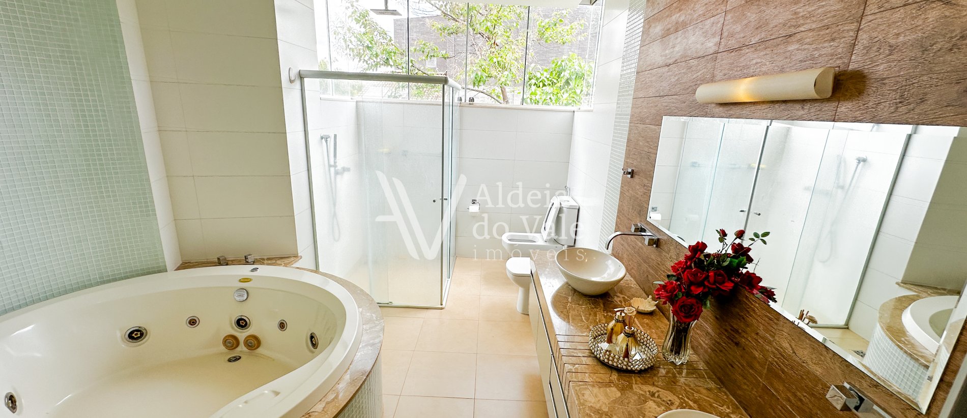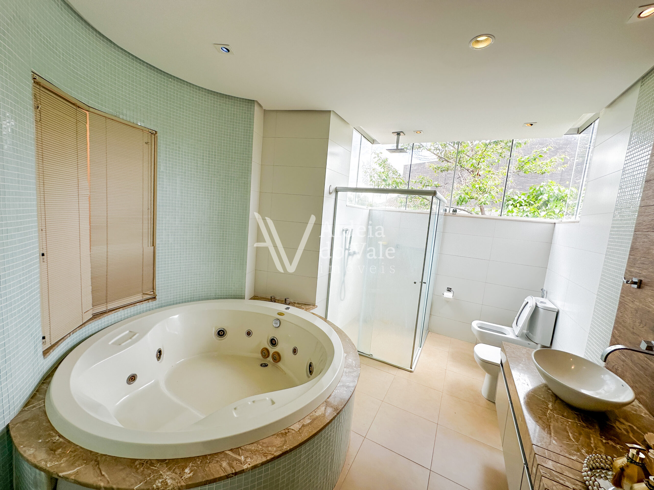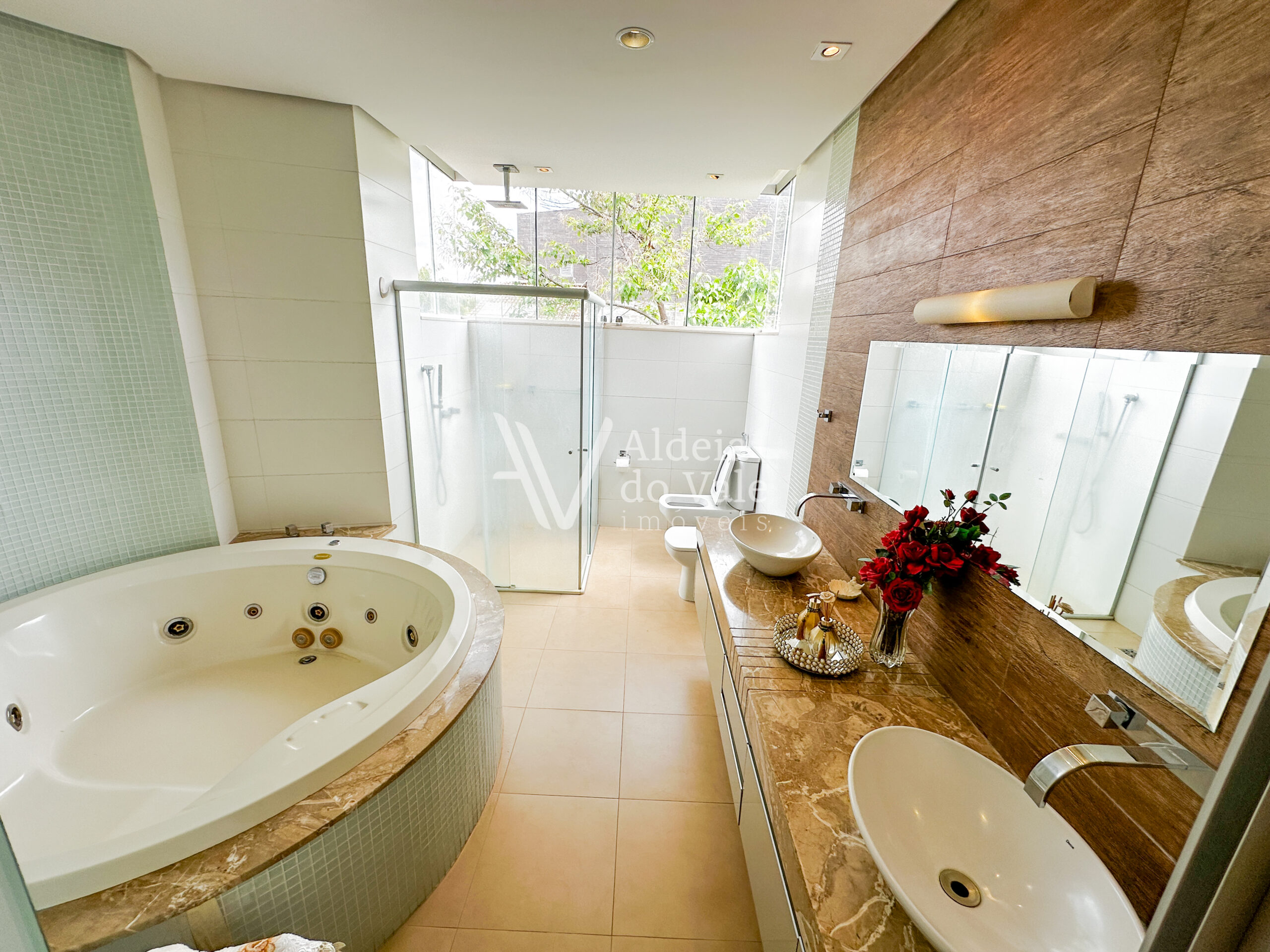 Um charmoso sobrado com 3 suítes, sendo 1 suíte master com closet e banheira.