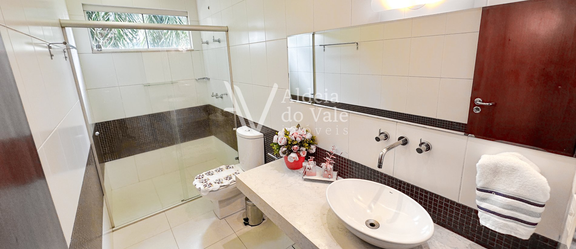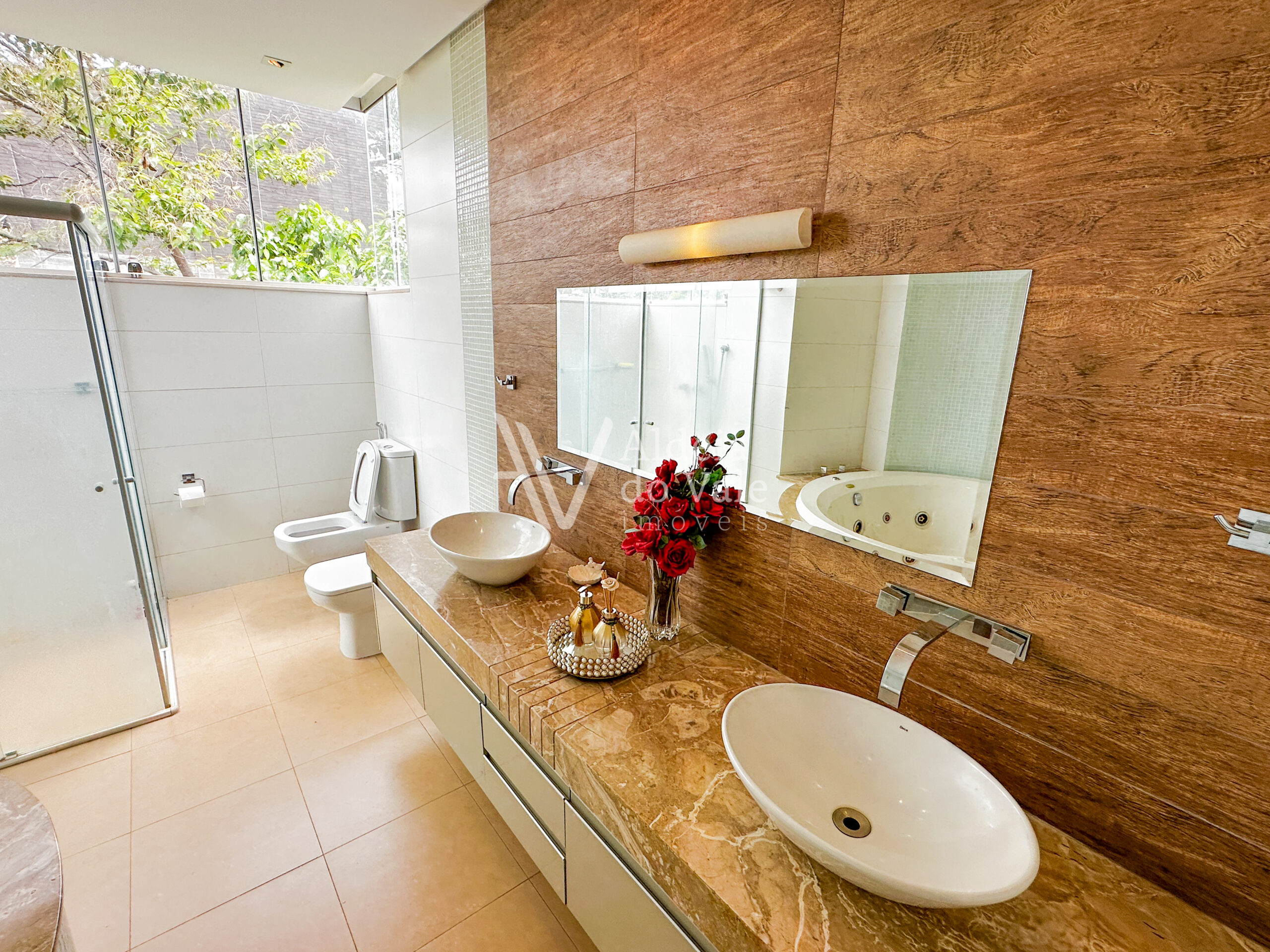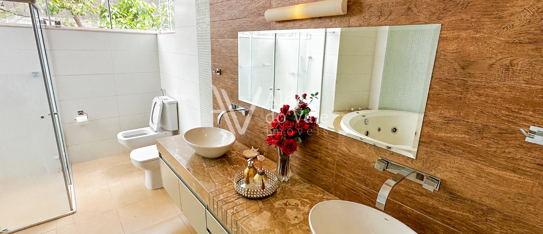 Um charmoso sobrado com 3 suítes, sendo 1 suíte master com closet e banheira.