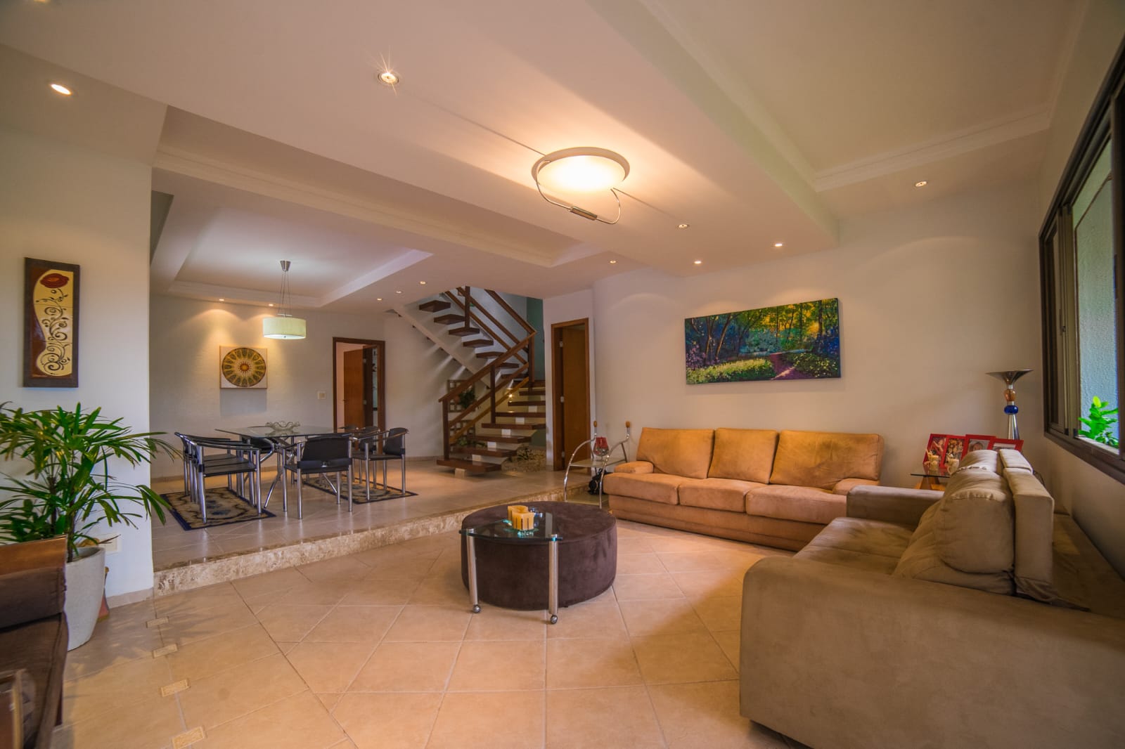 Sobrado aconchegante, em rua sem saída, lugar reservado e tranquilo dentro do condomínio, o final da rua tem um lindo lago e bosque. Projeto ideal para quem precisa de um apartamento anexo com entrada independente, que pode ser usado para diversas finalidades dependendo da sua necessidade. Sobrado rico em quartos para acolher uma ampla família, no piso superior tem 1 suíte máster com closet, sala íntima, escritório, 3 quartos com banheiro e uma sala de TV ampla com acesso para área de lazer por escada externa. No piso térreo tem um apartamento com 1 quarto banheiro ao lado e sala/cozinha integradas com entrada independente.