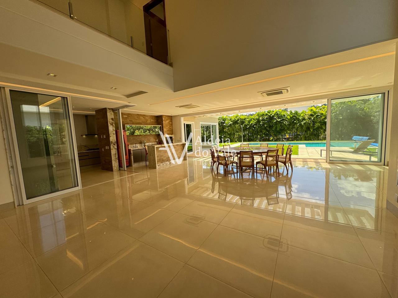 O imóvel tem 1 suíte no térreo, home externo, dce e área de lazer completa, com preparação para som na área da piscina e sala.