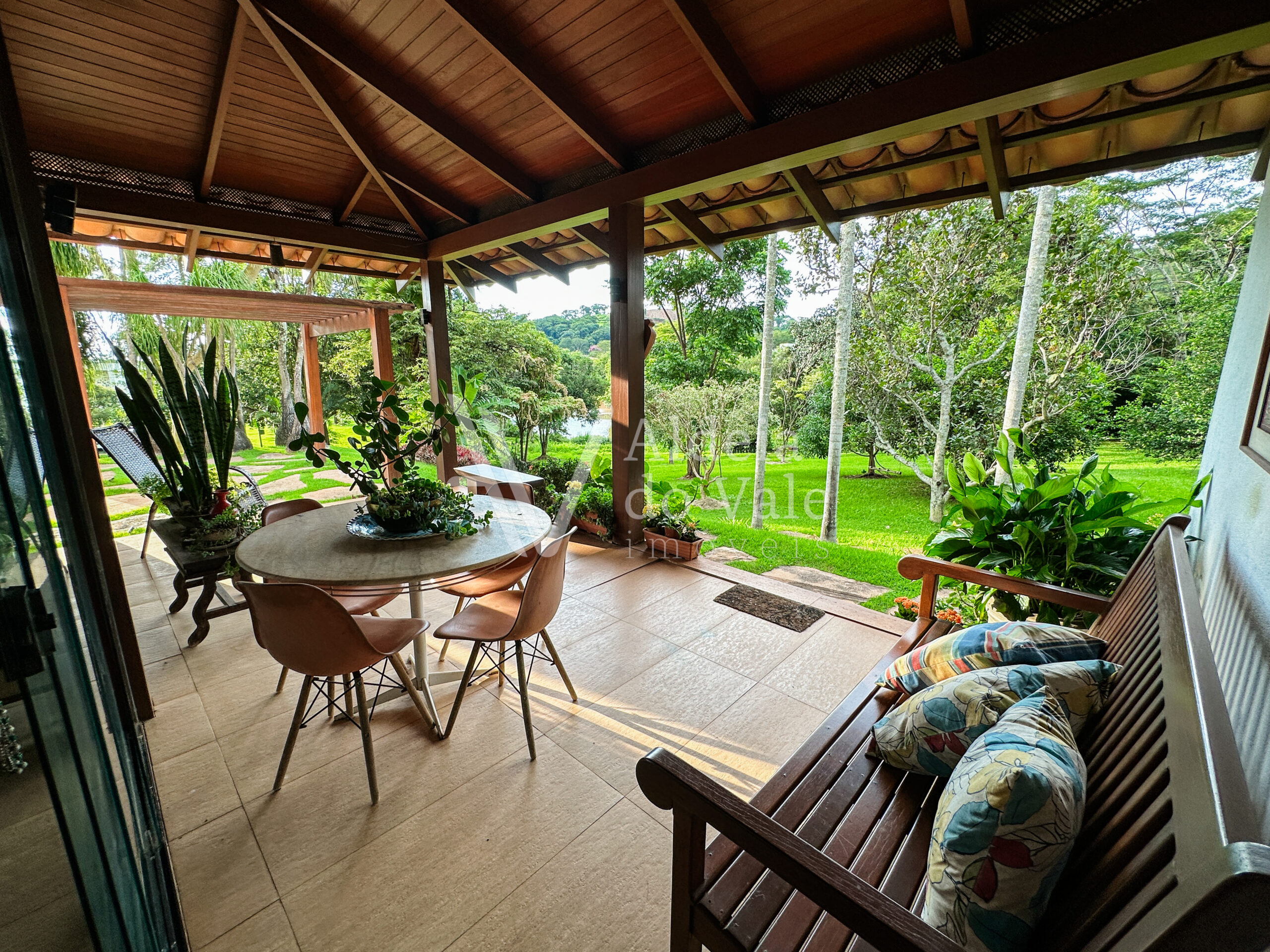 Imagine terminar o dia em uma varanda suspensa, com vista definitiva para o fundo de vale, enquanto o aroma da boa culinária toma conta da cozinha integrada.