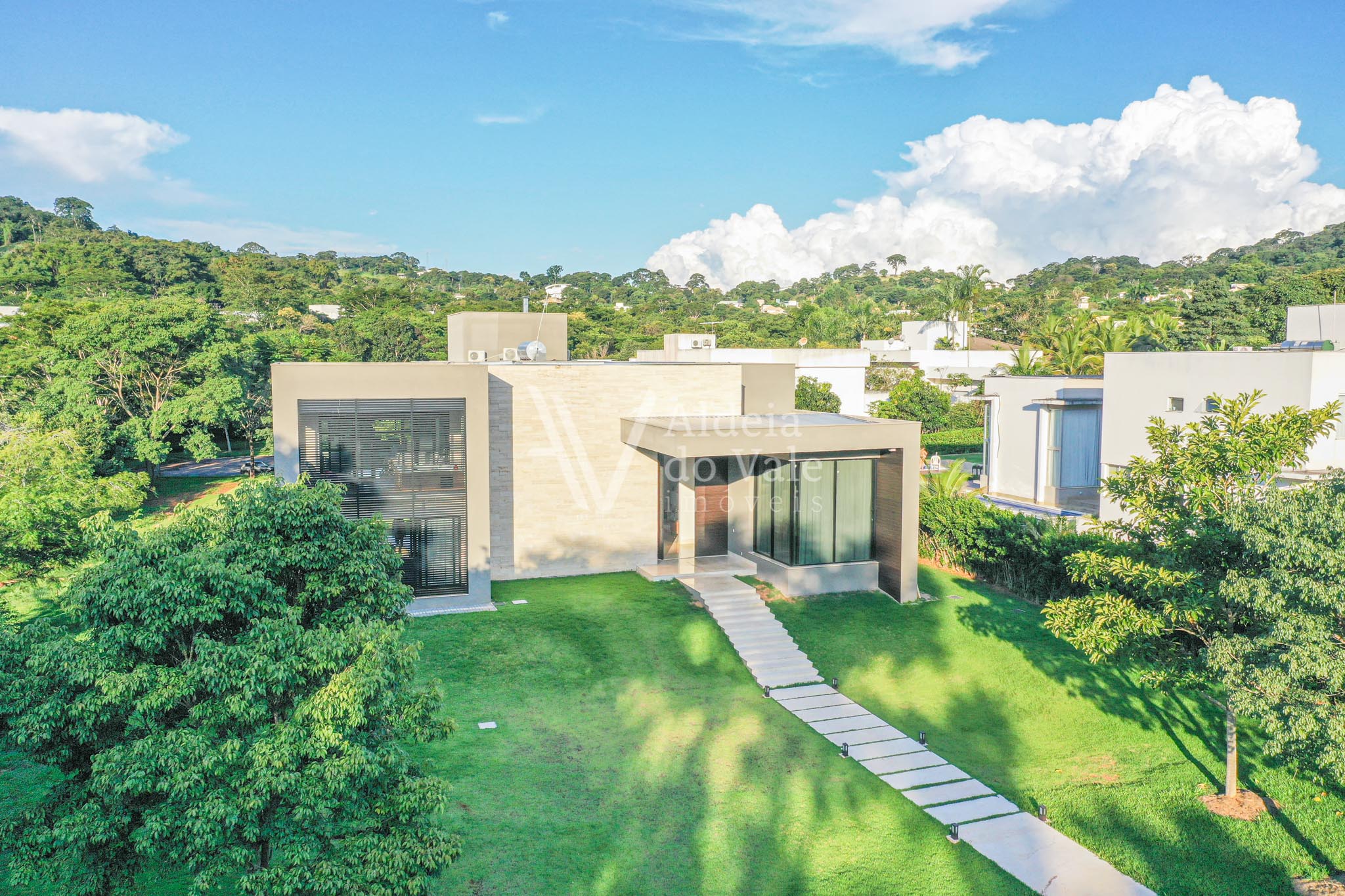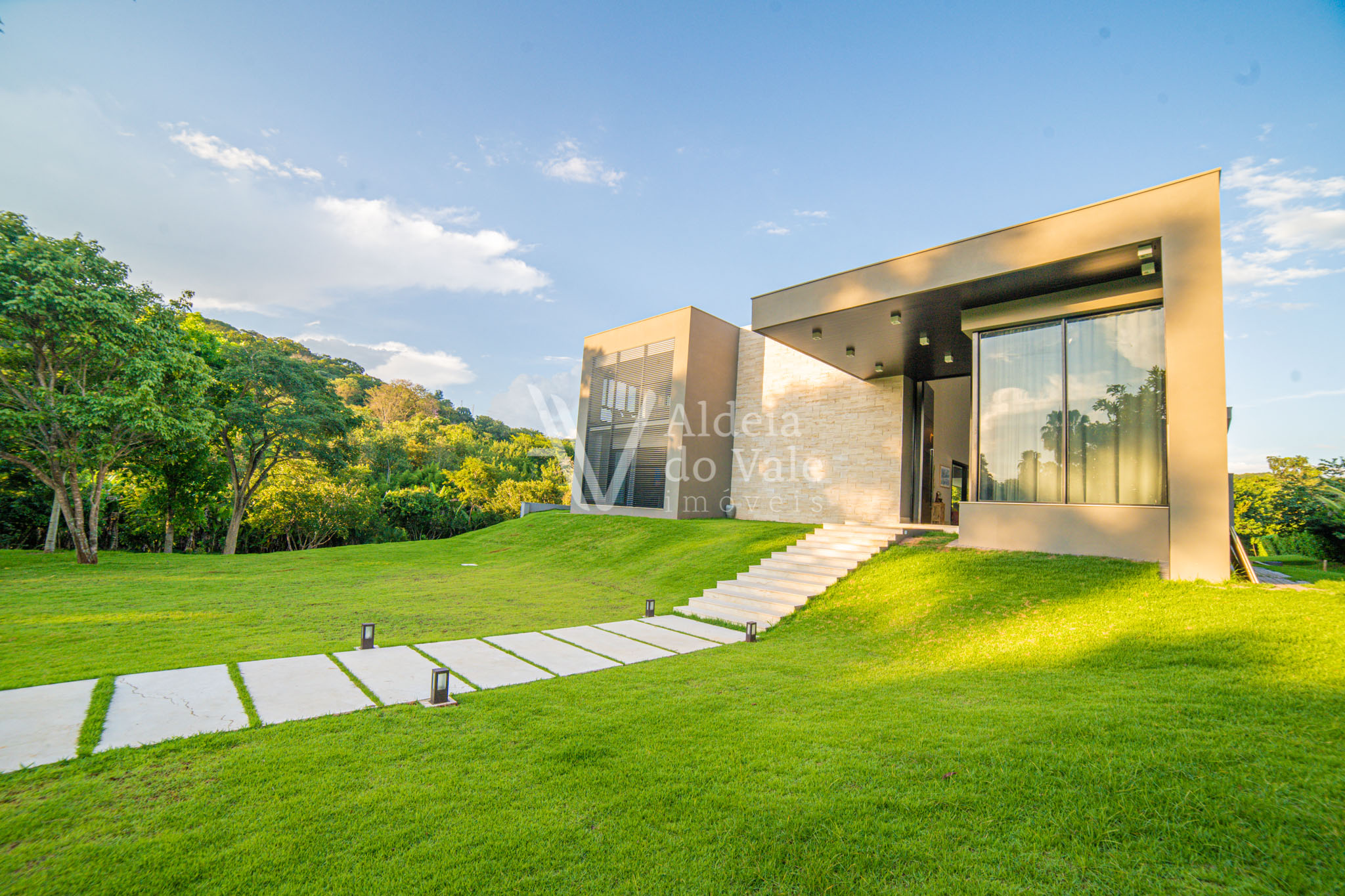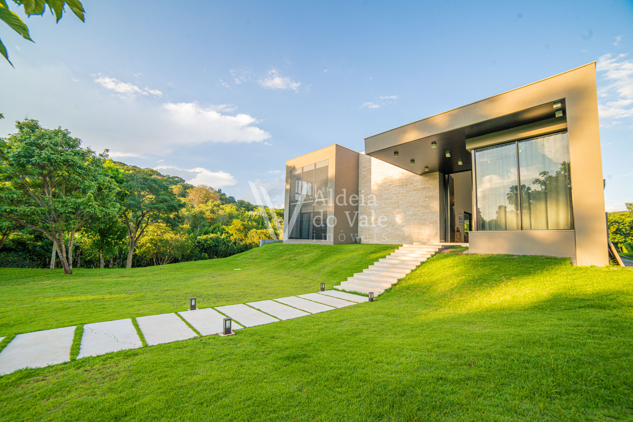 Edificada no meio da natureza, olho por todas as janelas e avisto o verde, é tanto espaço, tanta amplidão, com o complemento de um acolhimento total do vale ao redor. Pensar em todos os momentos maravilhosos que posso ter aqui é um filme contínuo e sem fim… chegar em casa e relaxar tomando um champagne à noite vendo o luar, dentro da banheira maravilhosa no meu recanto particular… cozinhar com os amigos na cozinha gourmet  envolta pela beleza da natureza, com privacidade total, estou em um lugar especial.