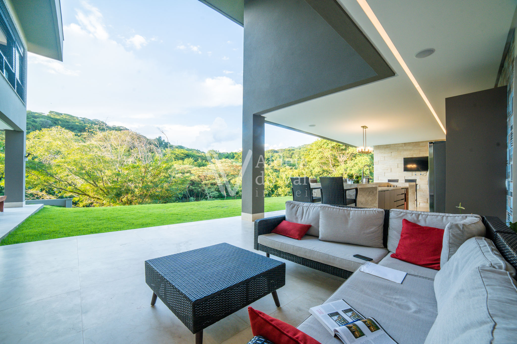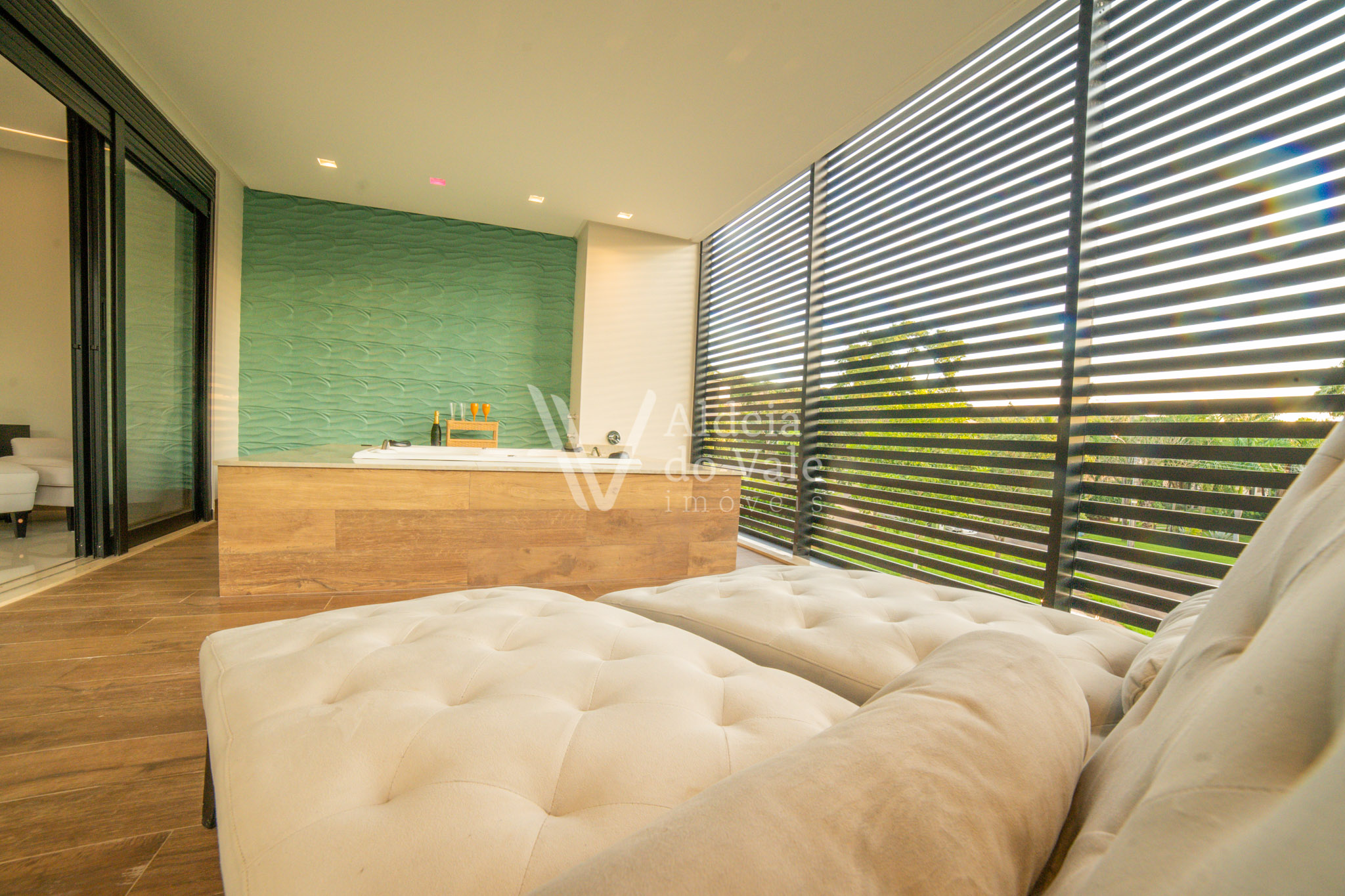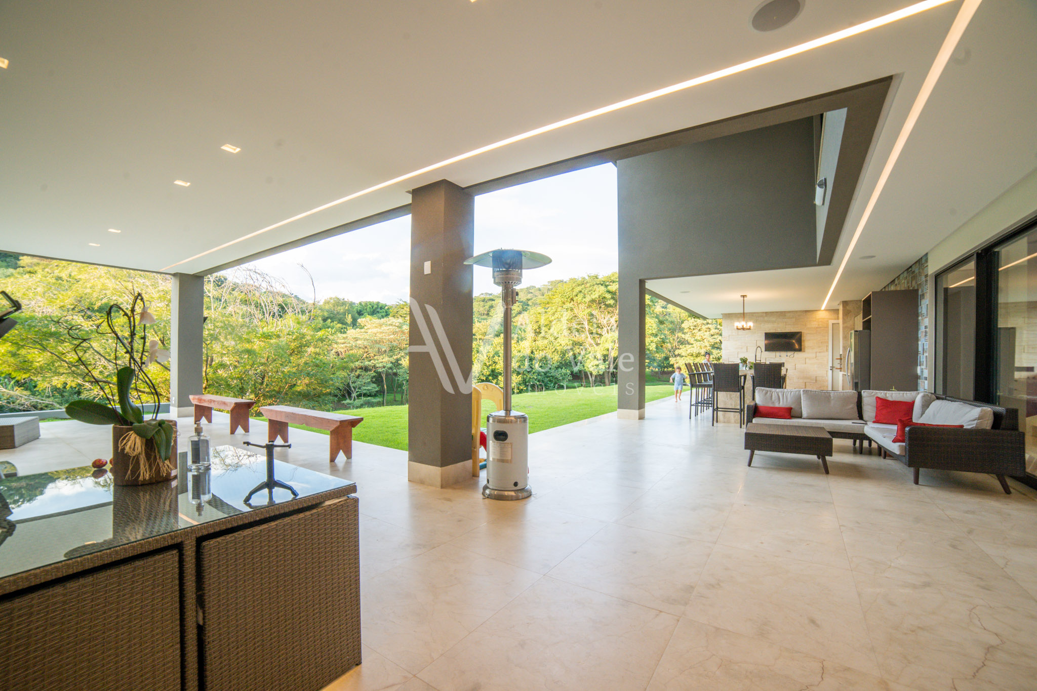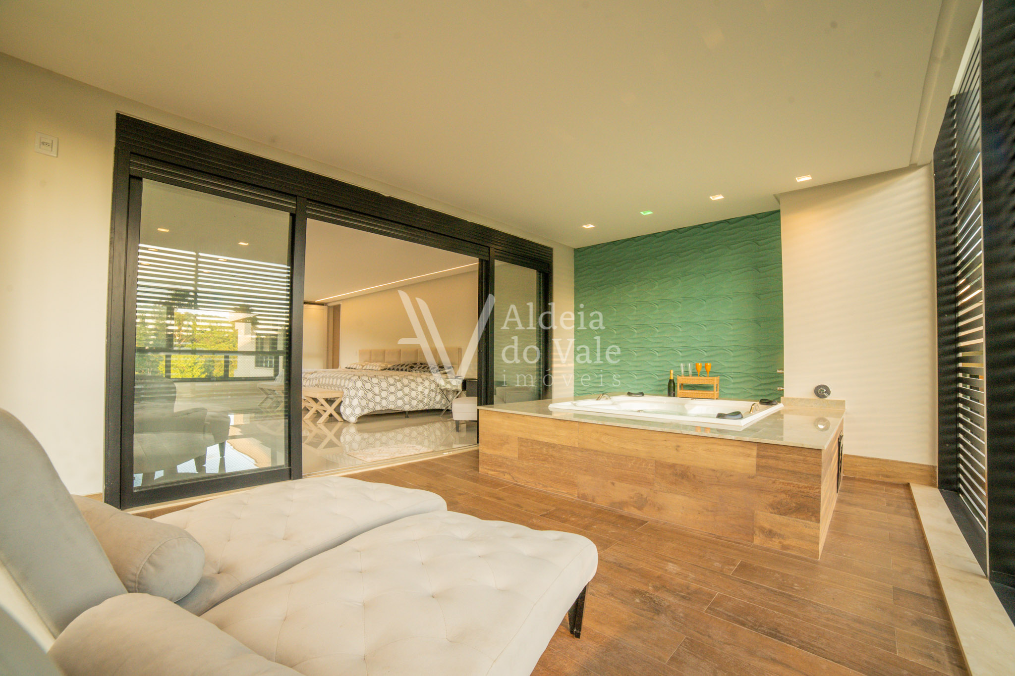 Edificada no meio da natureza, olho por todas as janelas e avisto o verde, é tanto espaço, tanta amplidão, com o complemento de um acolhimento total do vale ao redor. Pensar em todos os momentos maravilhosos que posso ter aqui é um filme contínuo e sem fim… chegar em casa e relaxar tomando um champagne à noite vendo o luar, dentro da banheira maravilhosa no meu recanto particular… cozinhar com os amigos na cozinha gourmet  envolta pela beleza da natureza, com privacidade total, estou em um lugar especial.