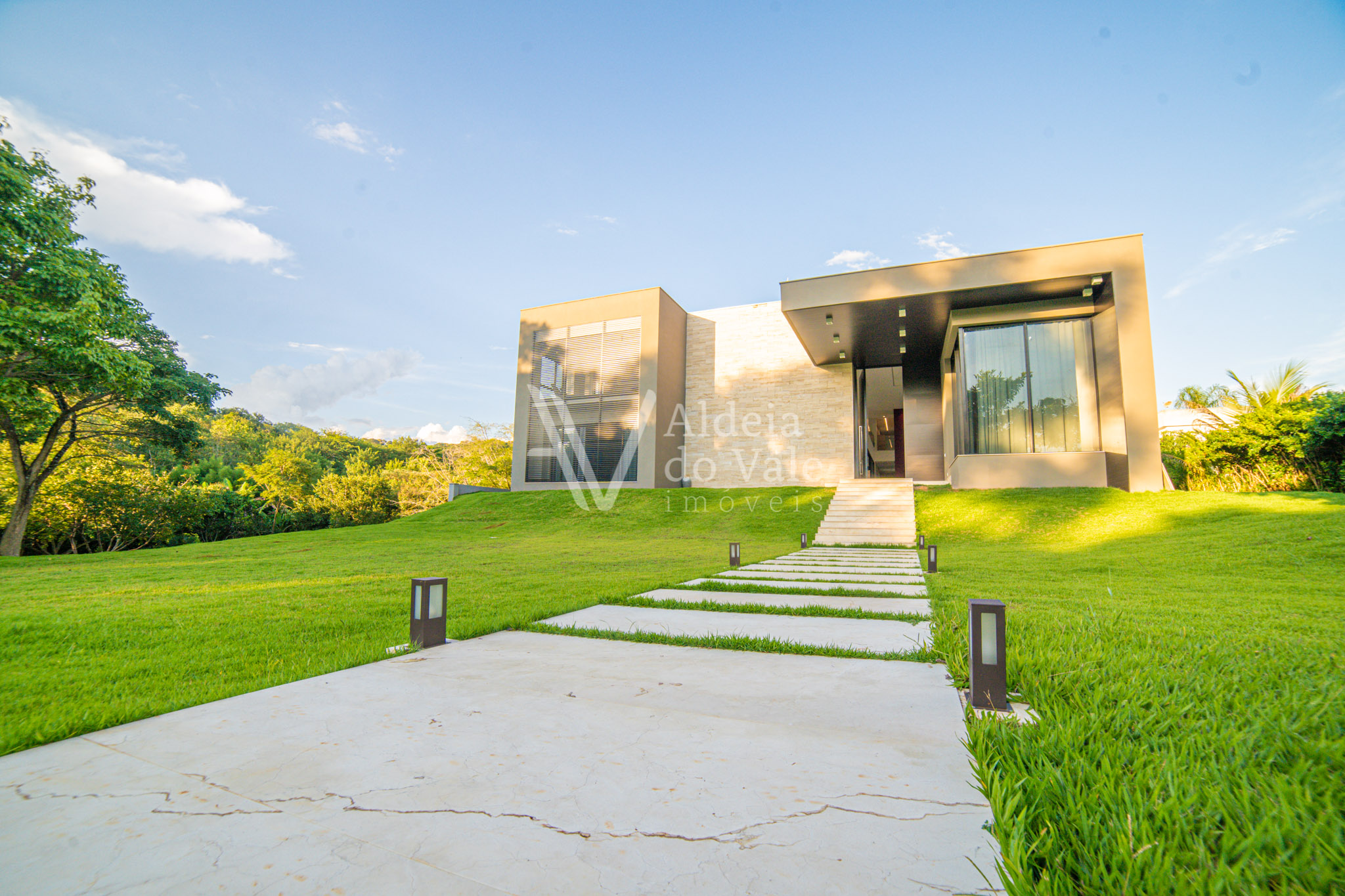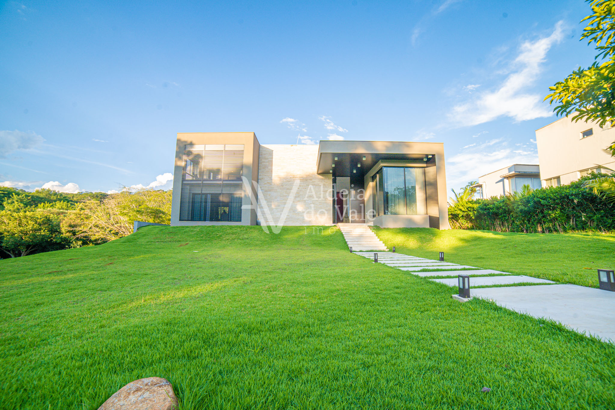Projetada pelo competente arquiteto Pedro Ernesto, com uma fachada de 70 m2 no tacão de mármore travertino, a casa possui 1.027 m2 para você brincar com a decoração, criar os detalhes que você imaginar e construir a piscina dos sonhos, perfeita para adornar o lazer.
