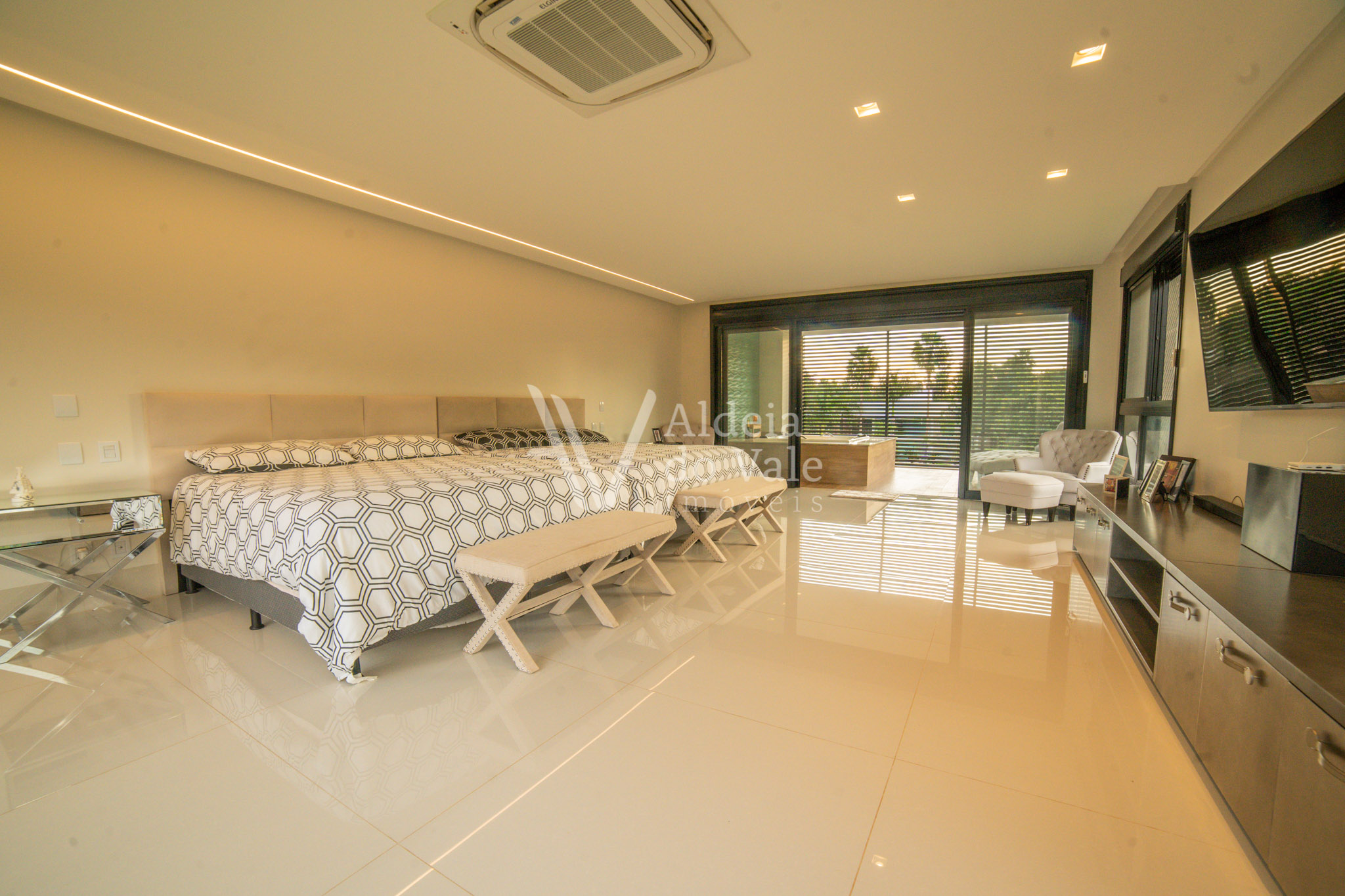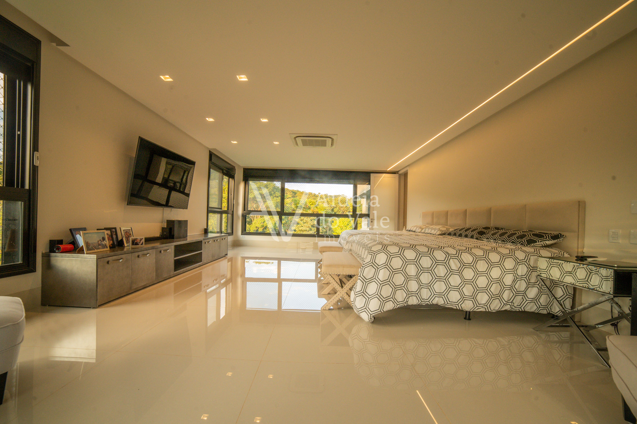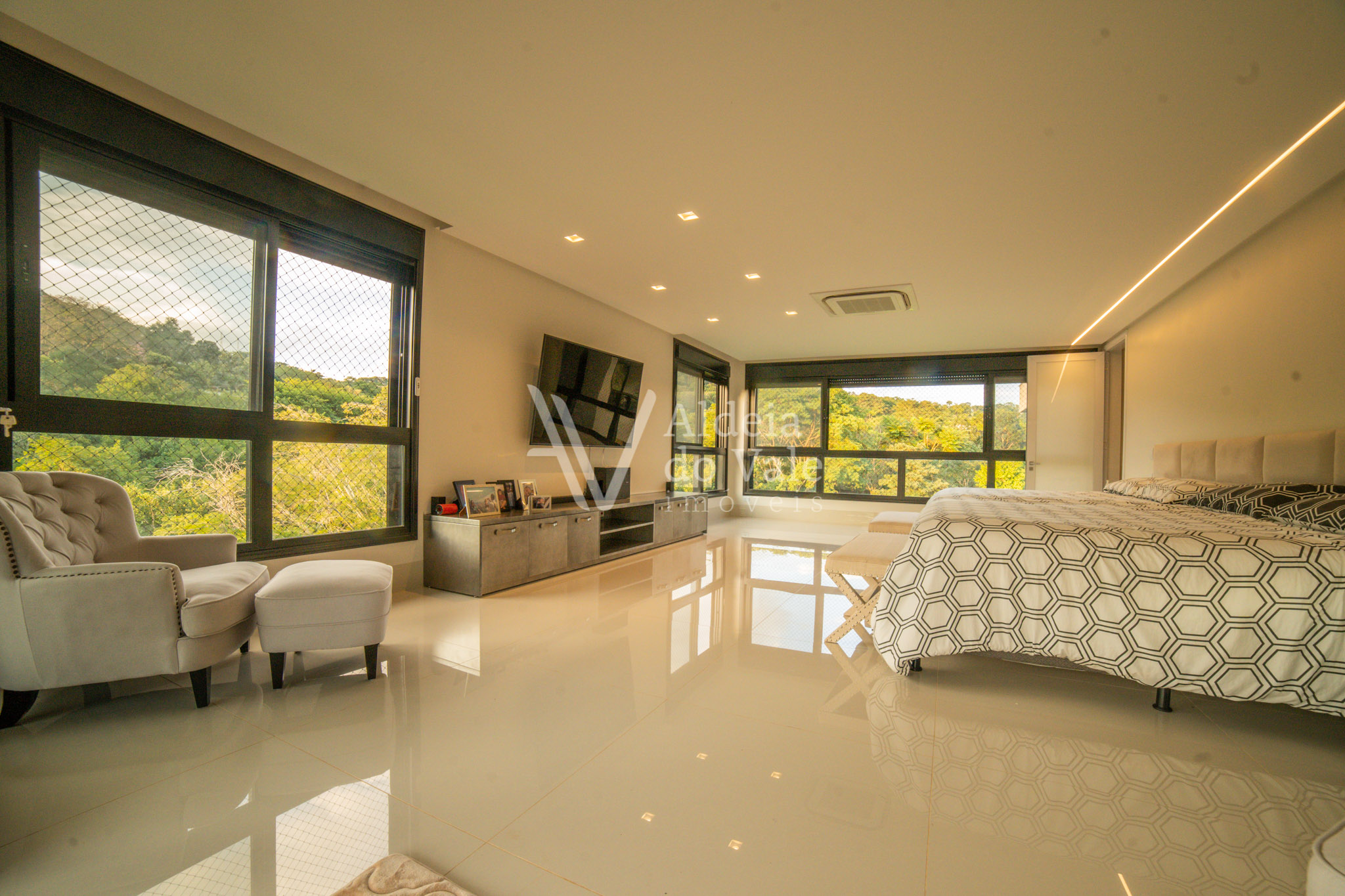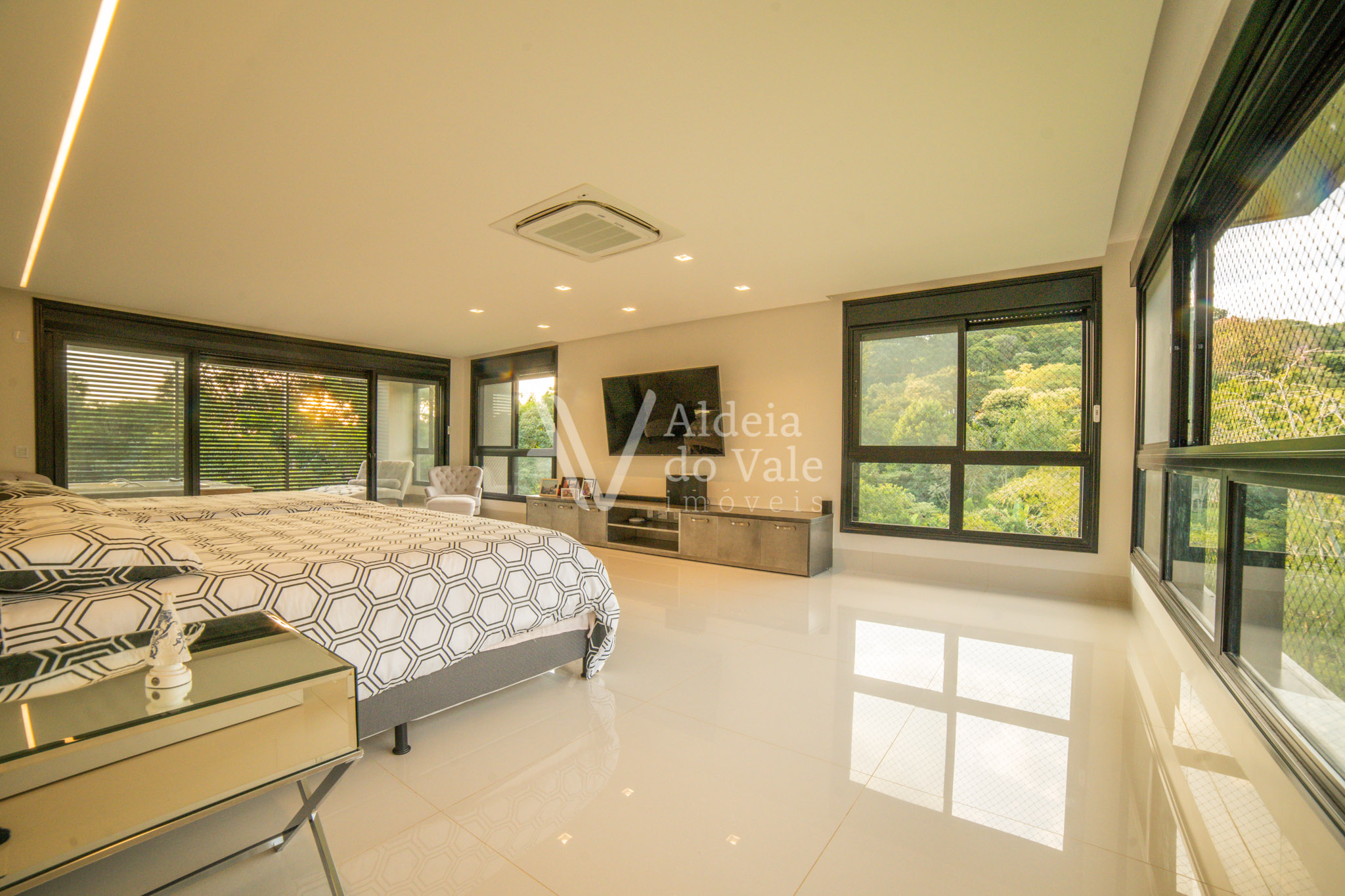 Todos os ambientes completos com armários da Florense, ar condicionados inverter. Todas as janelas com rede de proteção para crianças e persianas automatizadas blackout. A sua construção é maravilhosa, além do que revelam as fotos, ela tem poço artesiano, 3 caixas d´água com capacidade de armazenamento de 9 mil litros, energia solar em todos os banheiros, usina fotovoltaica instalada e em funcionamento, preparada para funcionamento de equipamentos de 110 e 220v.