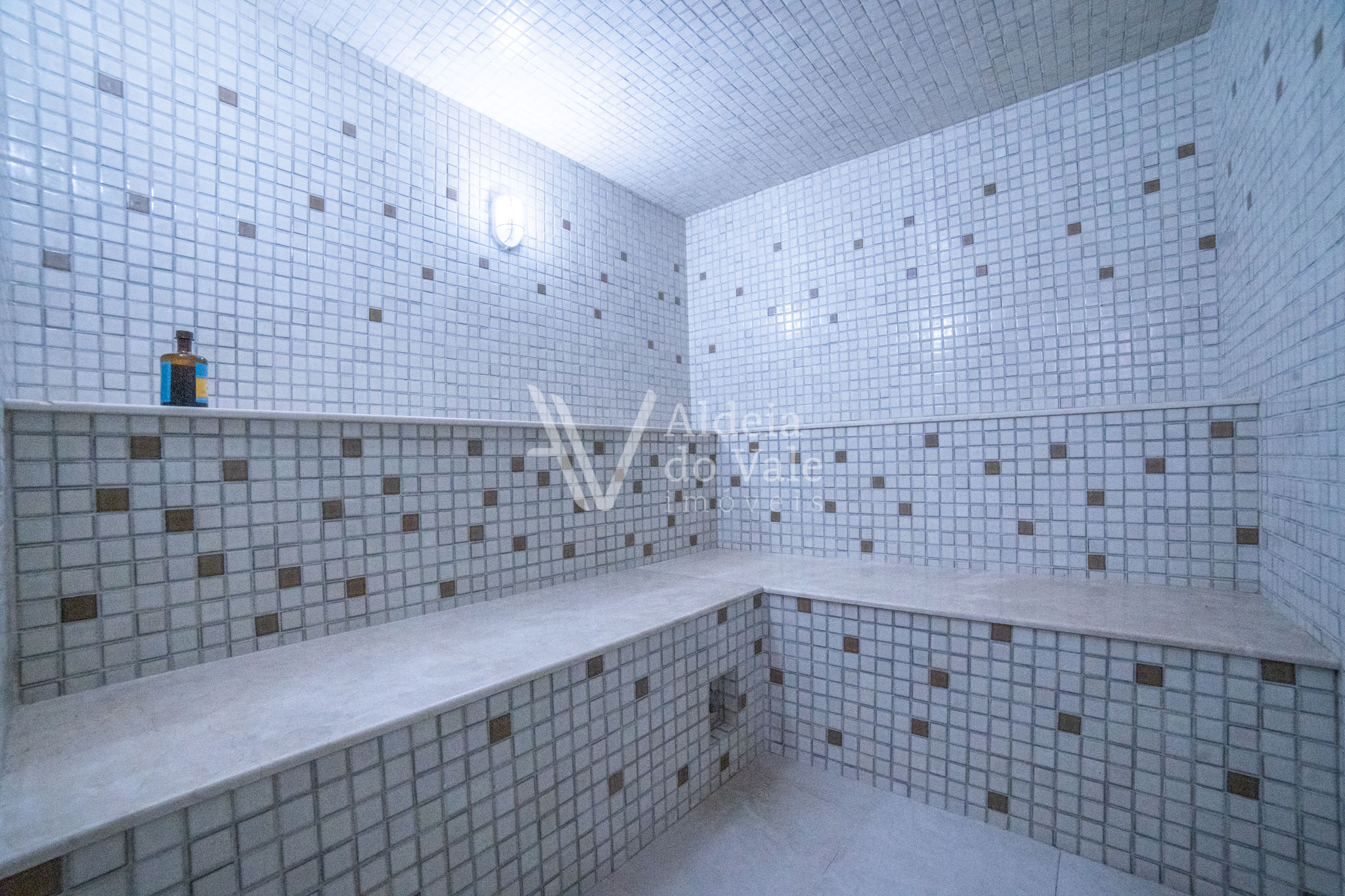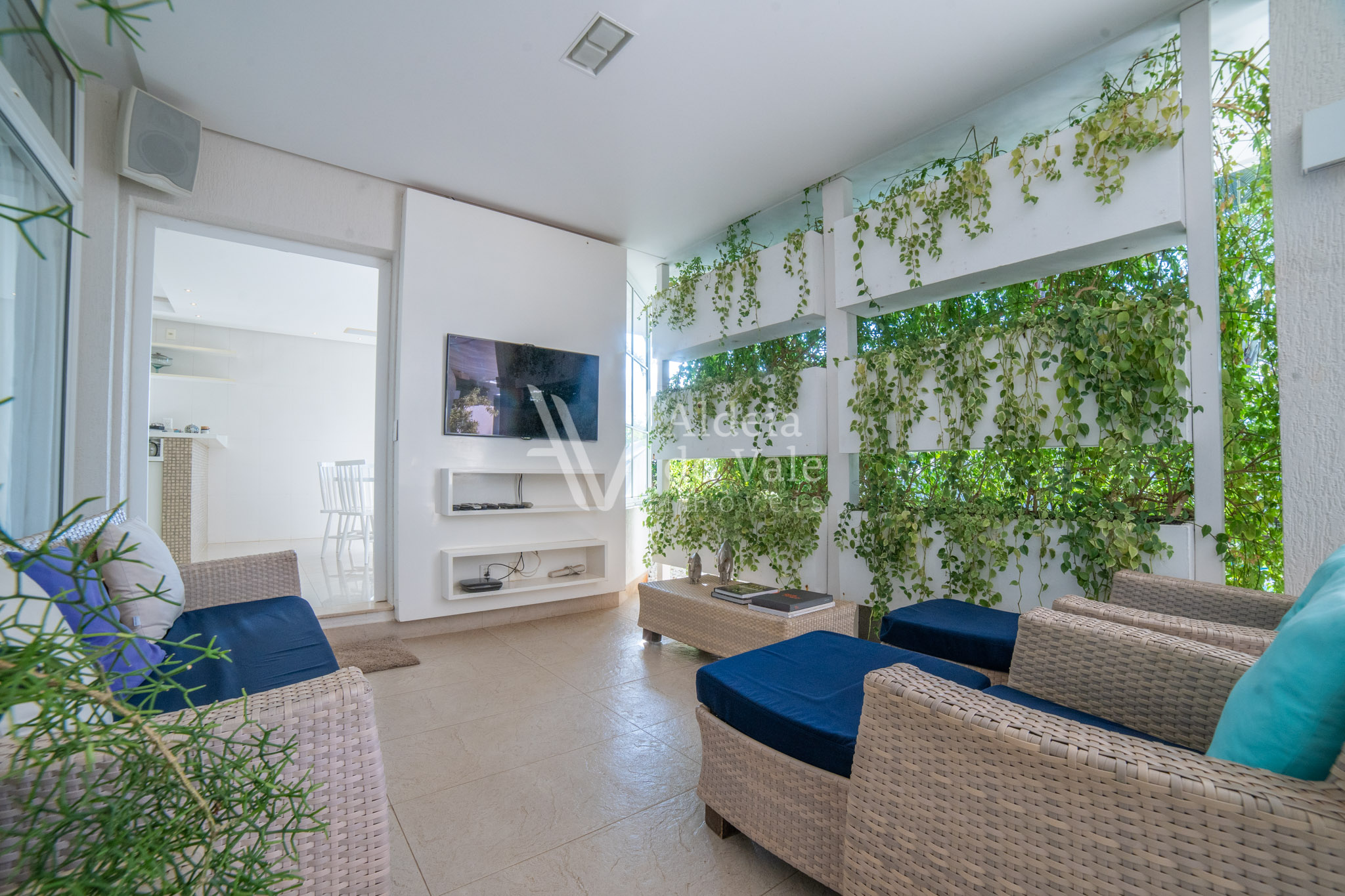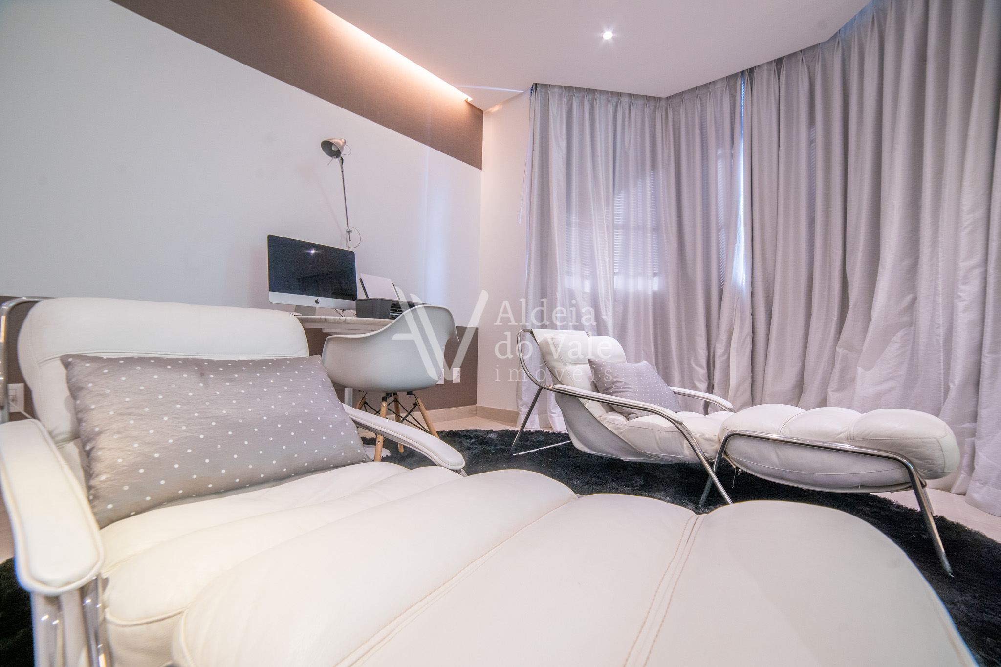 As salas junto da linda área de lazer se integram com a churrasqueira, a sauna e a piscina com cascata formando um cantinho mais que especial, do alto com uma vista bela que convida aos momentos de relaxamento e curtição. Uma música cai bem, completa e faz da vida nesta casa um convite permanente à alegria, à união e à gratidão.
