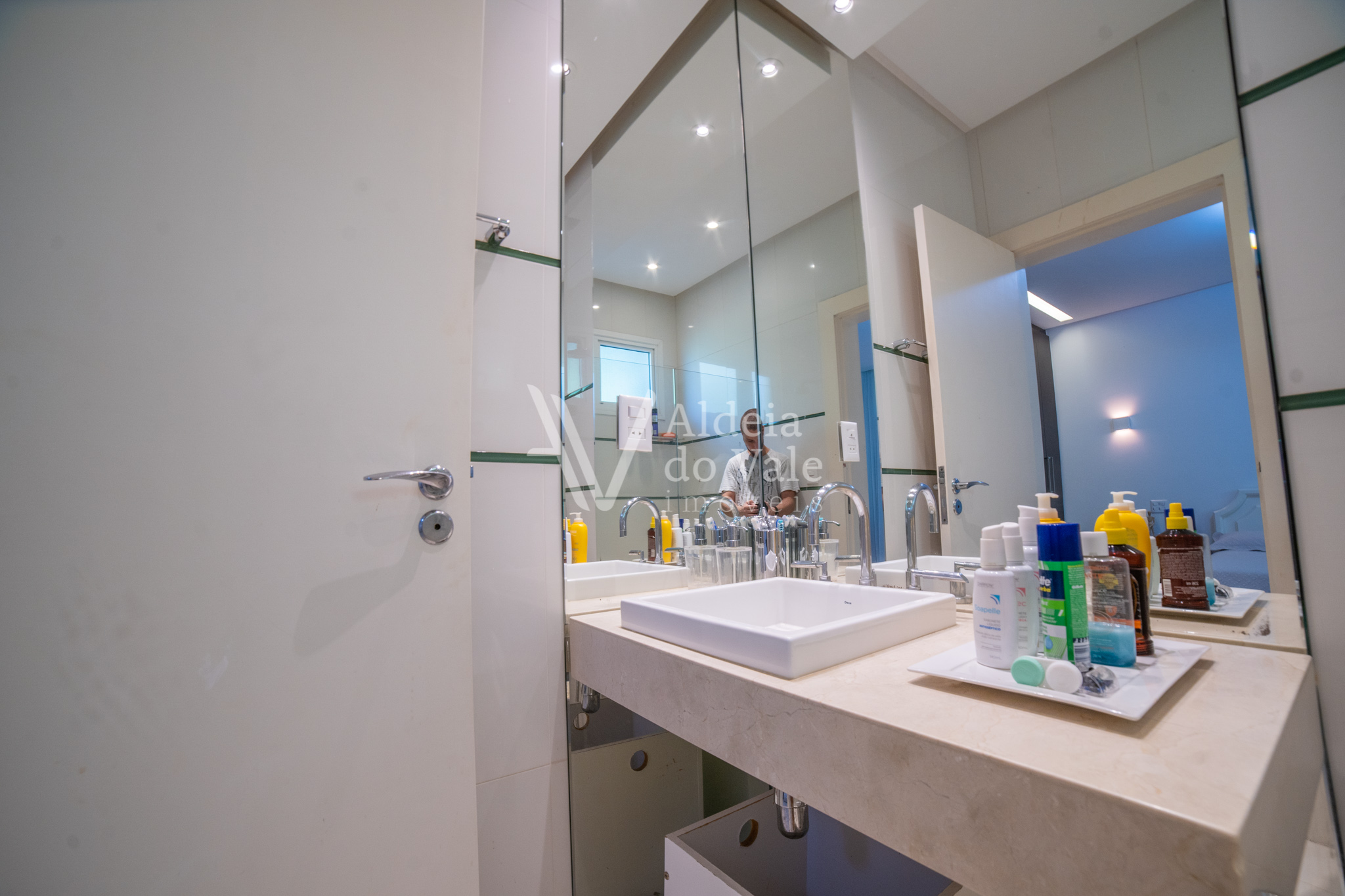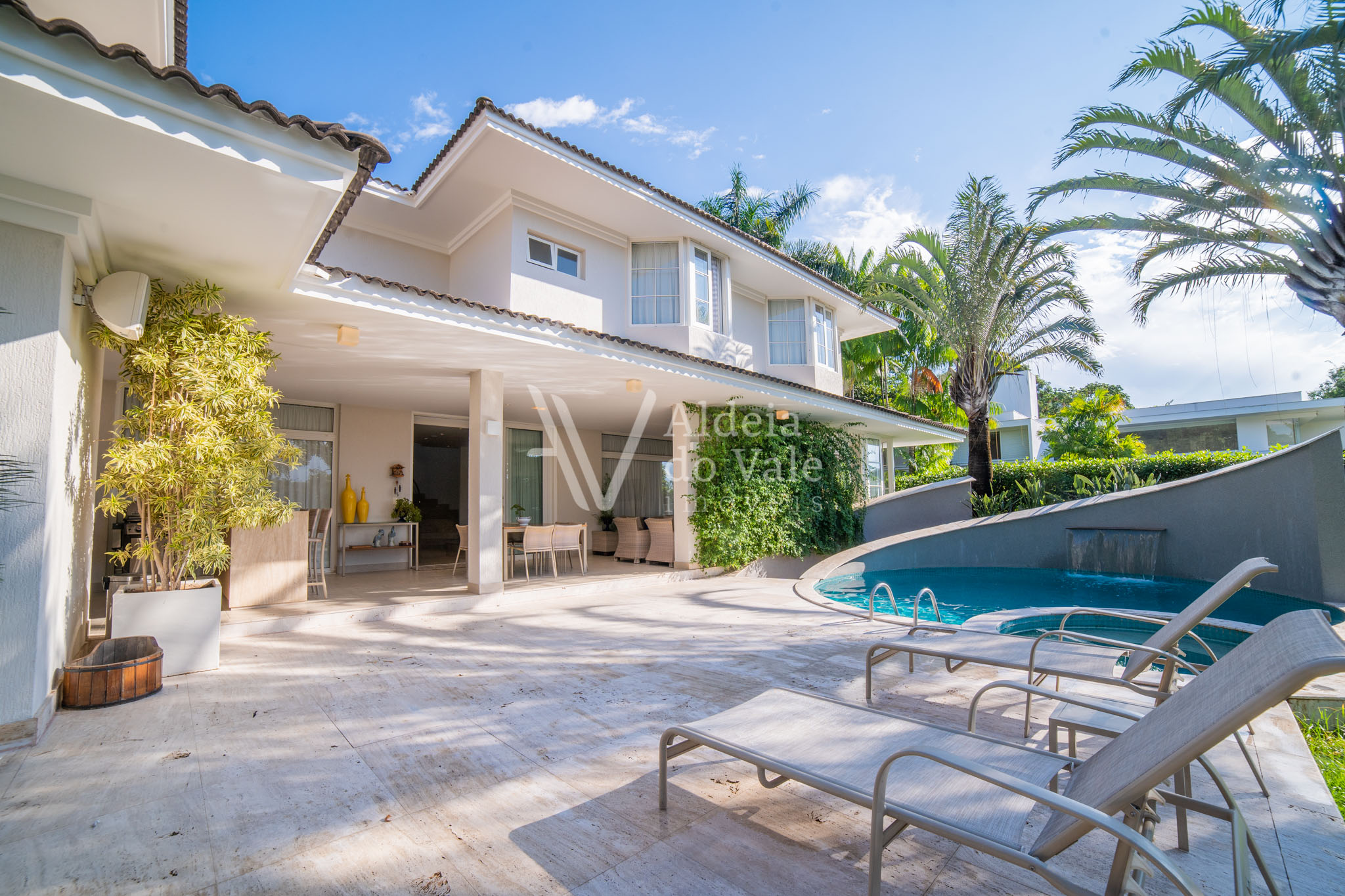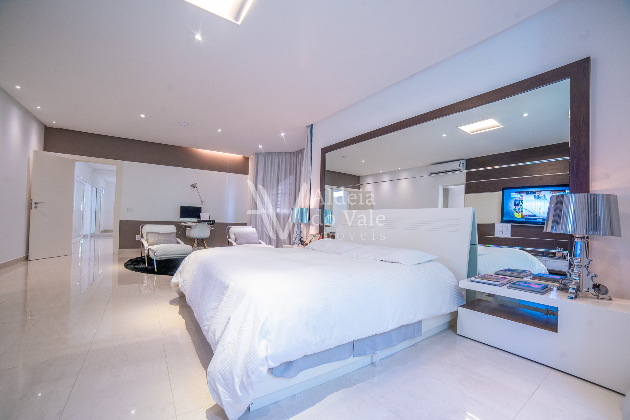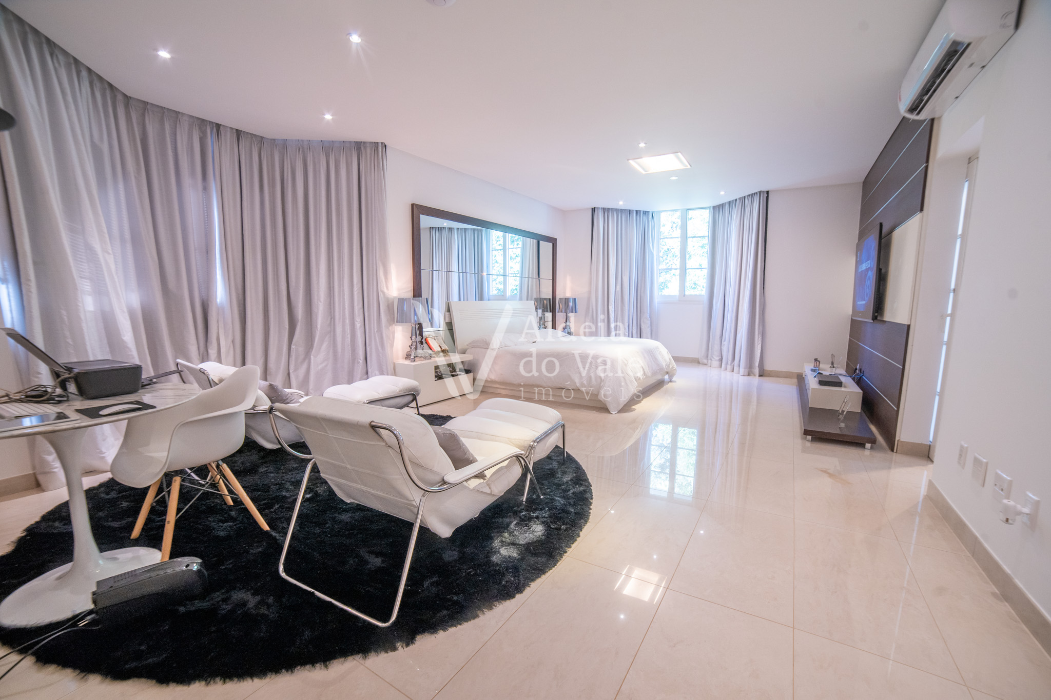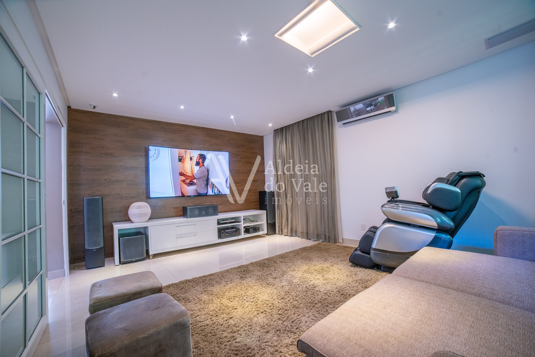 Esta casa especial está pronta para morar, mobiliada e decorada. Ela tem 4 suítes ( uma no piso térreo) sendo a do casal com closet e com hidro). Escritório, Home Theater com TV de 80 polegadas e tela curva, DCE. Todos os cômodos com ar condicionado, sistema de câmeras e armários.