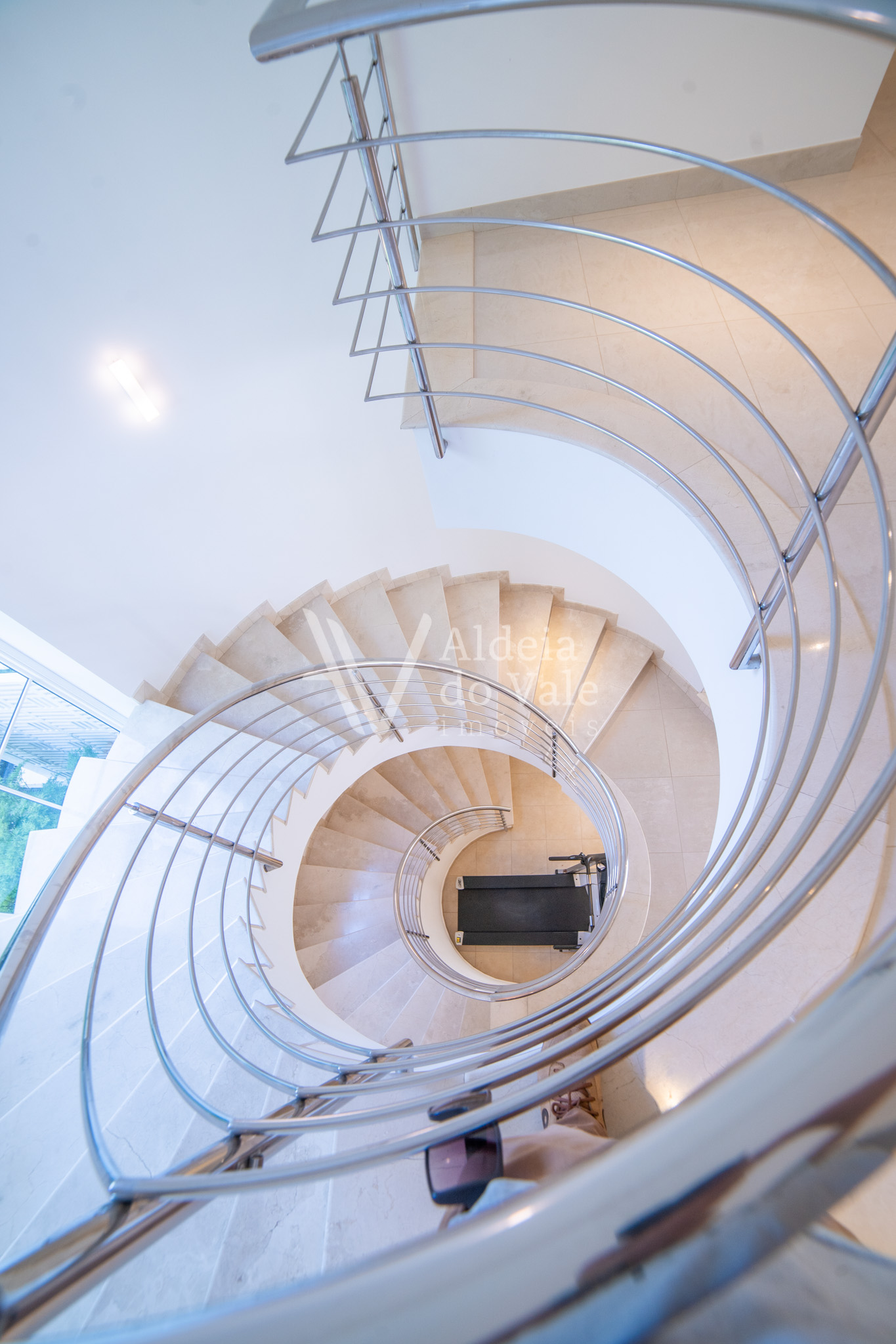 Tem estrutura pronta para a instalação de elevador, todas as portas internas com portais de madeira maciça, esquadrias de PVC e alumínio anodizado branco, lajes impermeáveis com o escoamento em caso de vazamento, telhado de estrutura metálica reforçado, dois medidores de energia (um é exclusivo do poço artesiano), dois escaninhos completos em armários, garagem coberta para 4 carros e cabem até 8 carros em gaveta. Gás encanado com dois bujões de 45kg cada.