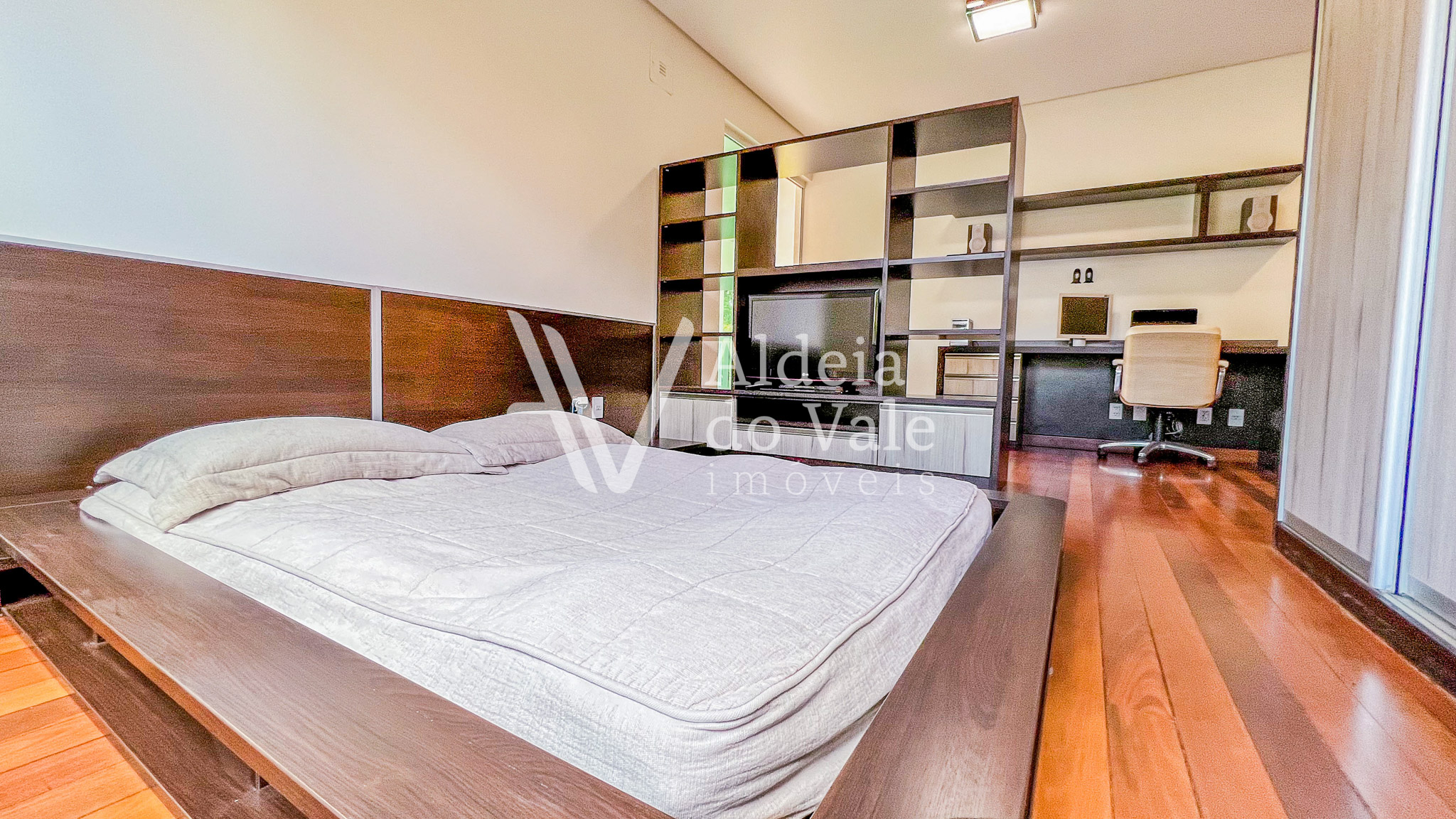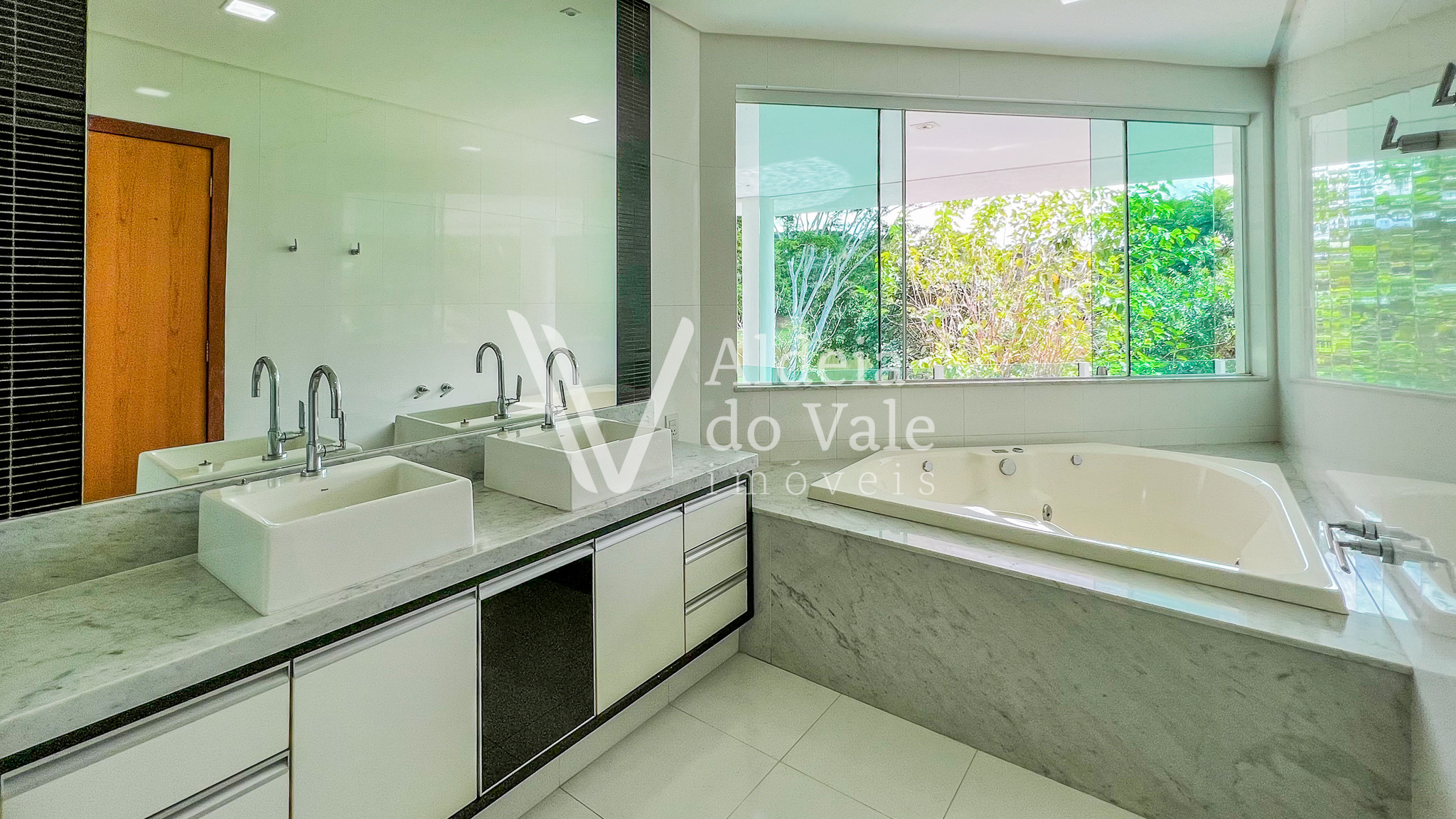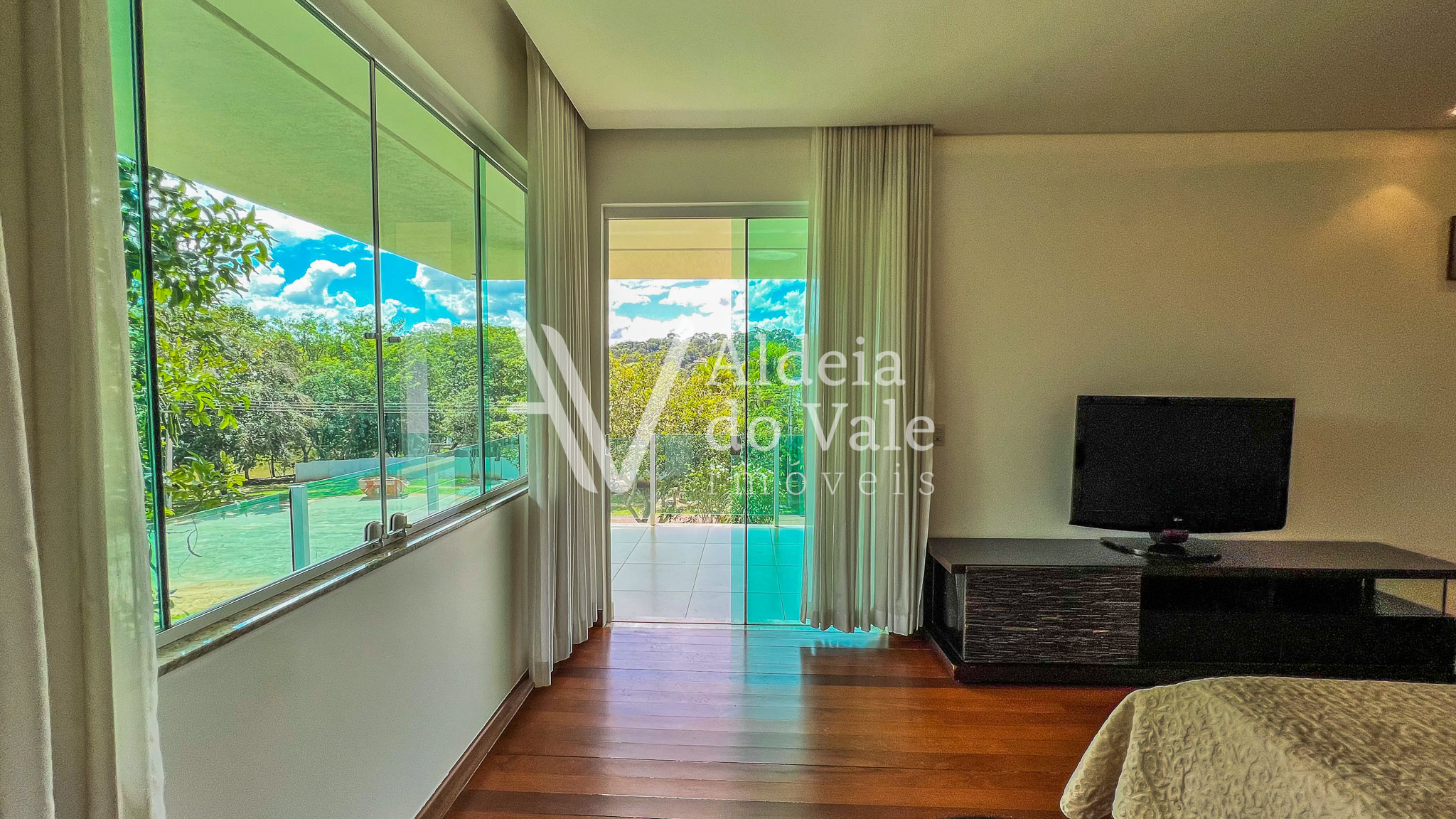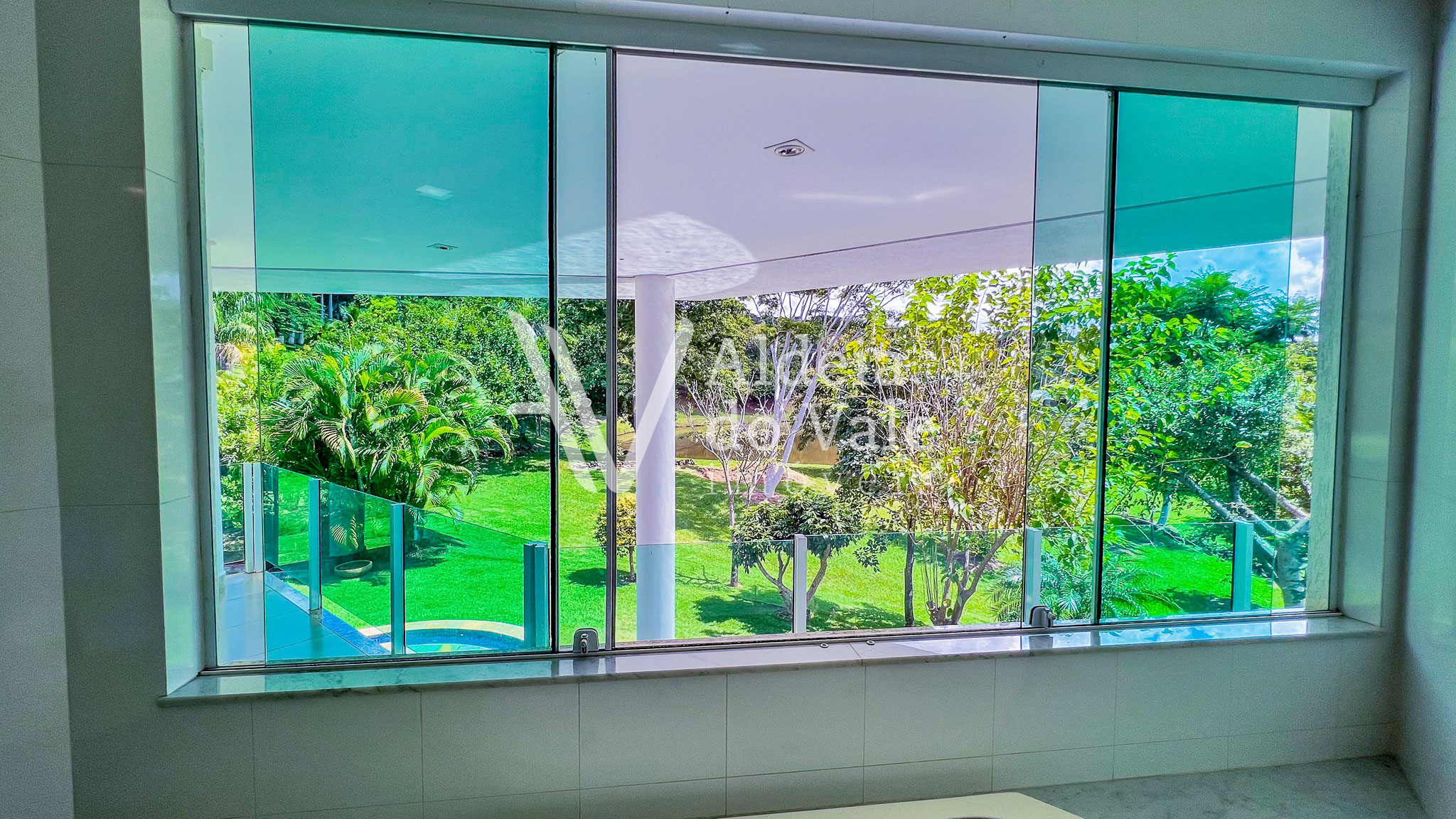 Todo o piso superior da casa é rico em varandas, o que proporciona uma vista ampla do terreno e do condomínio. Possui 5 suítes, sendo uma Master (com banheira e closet), duas suítes com ambiente de escritório, e uma suíte no andar térreo.