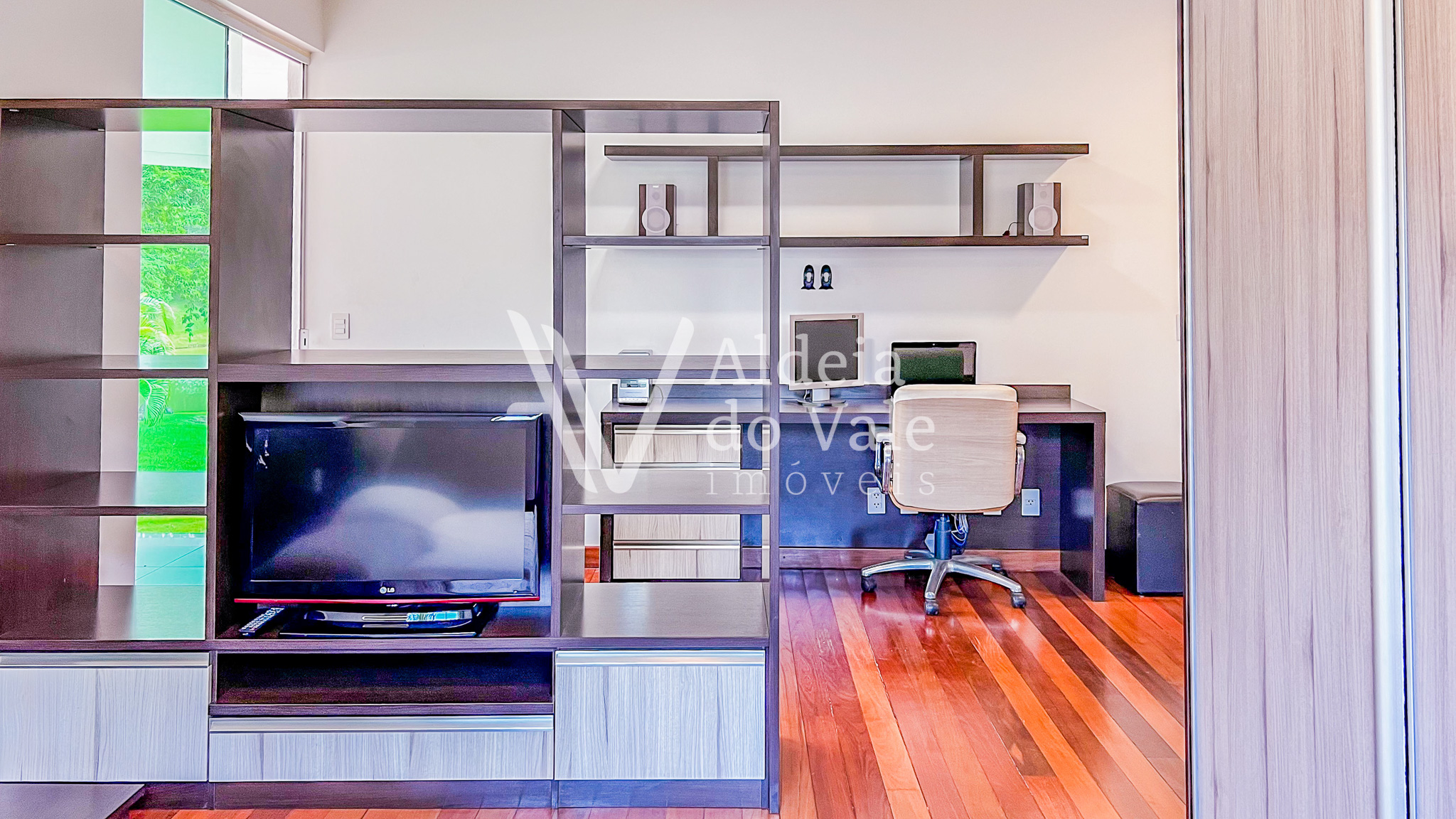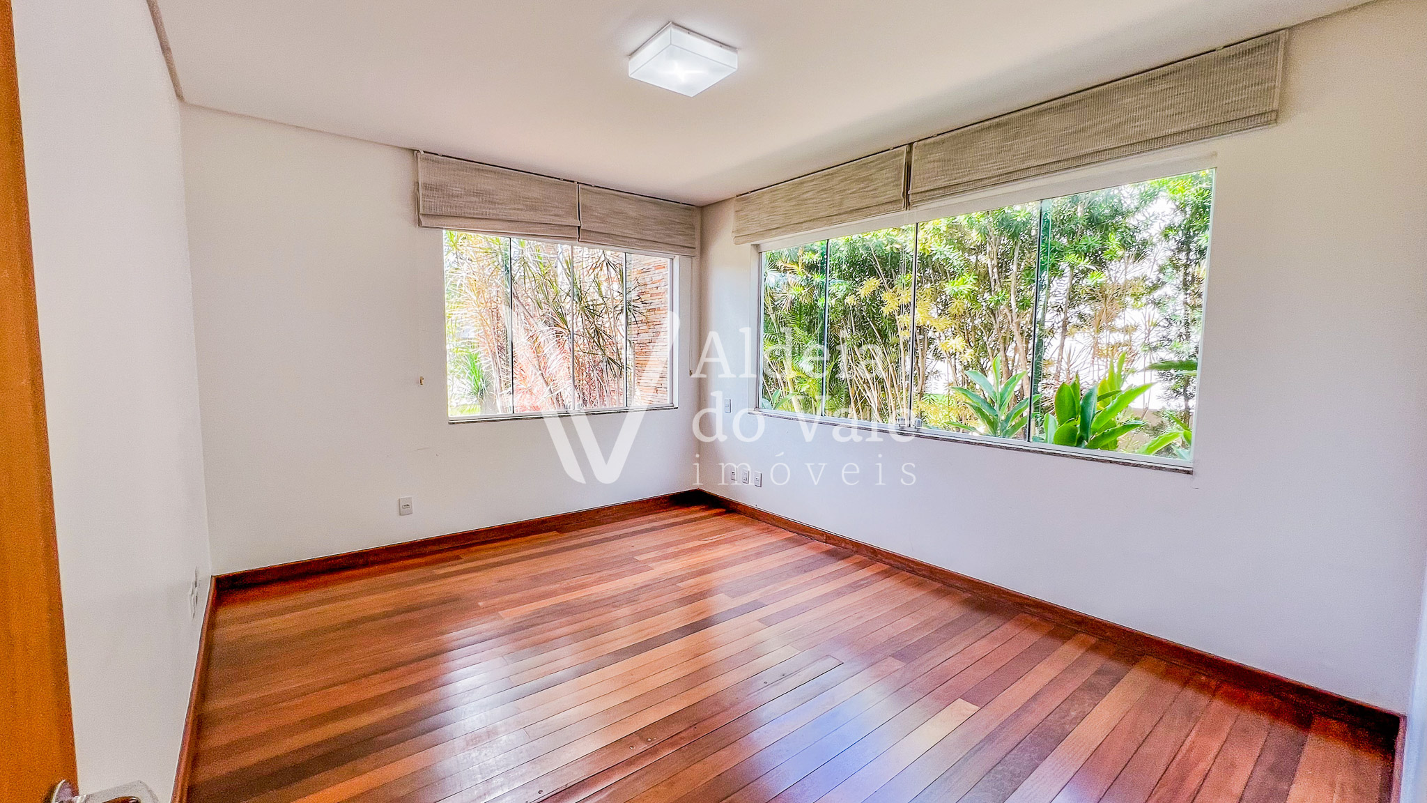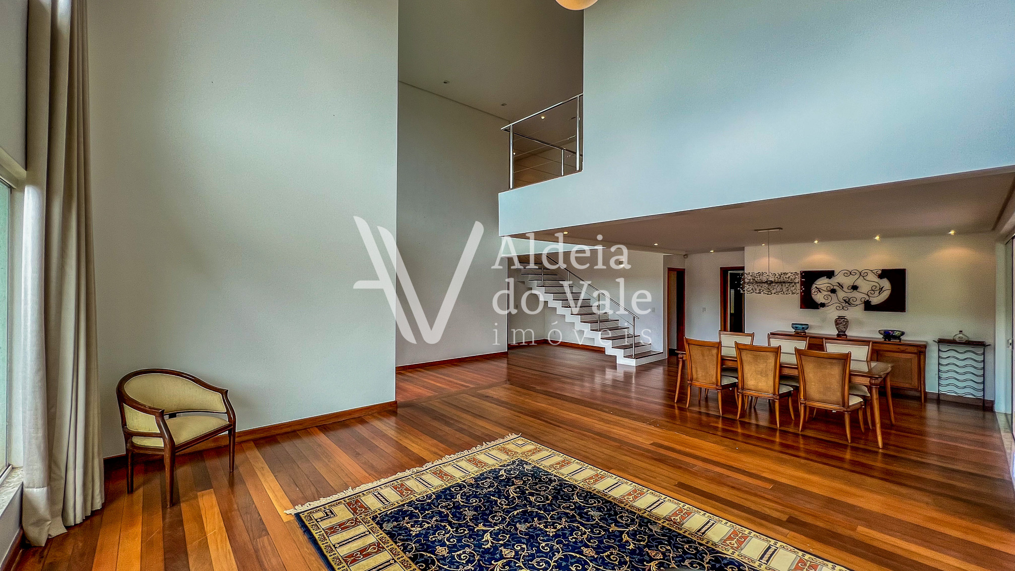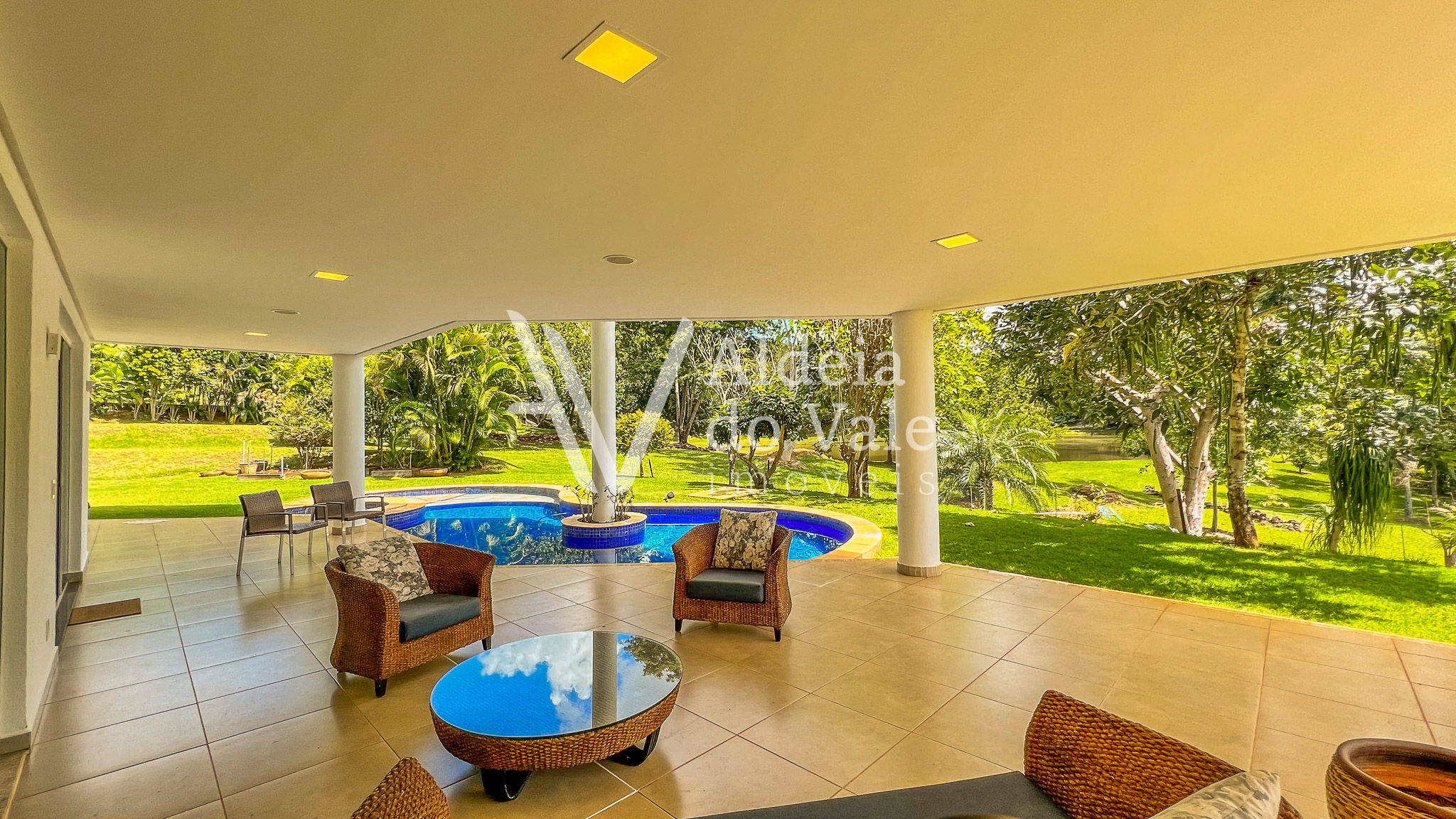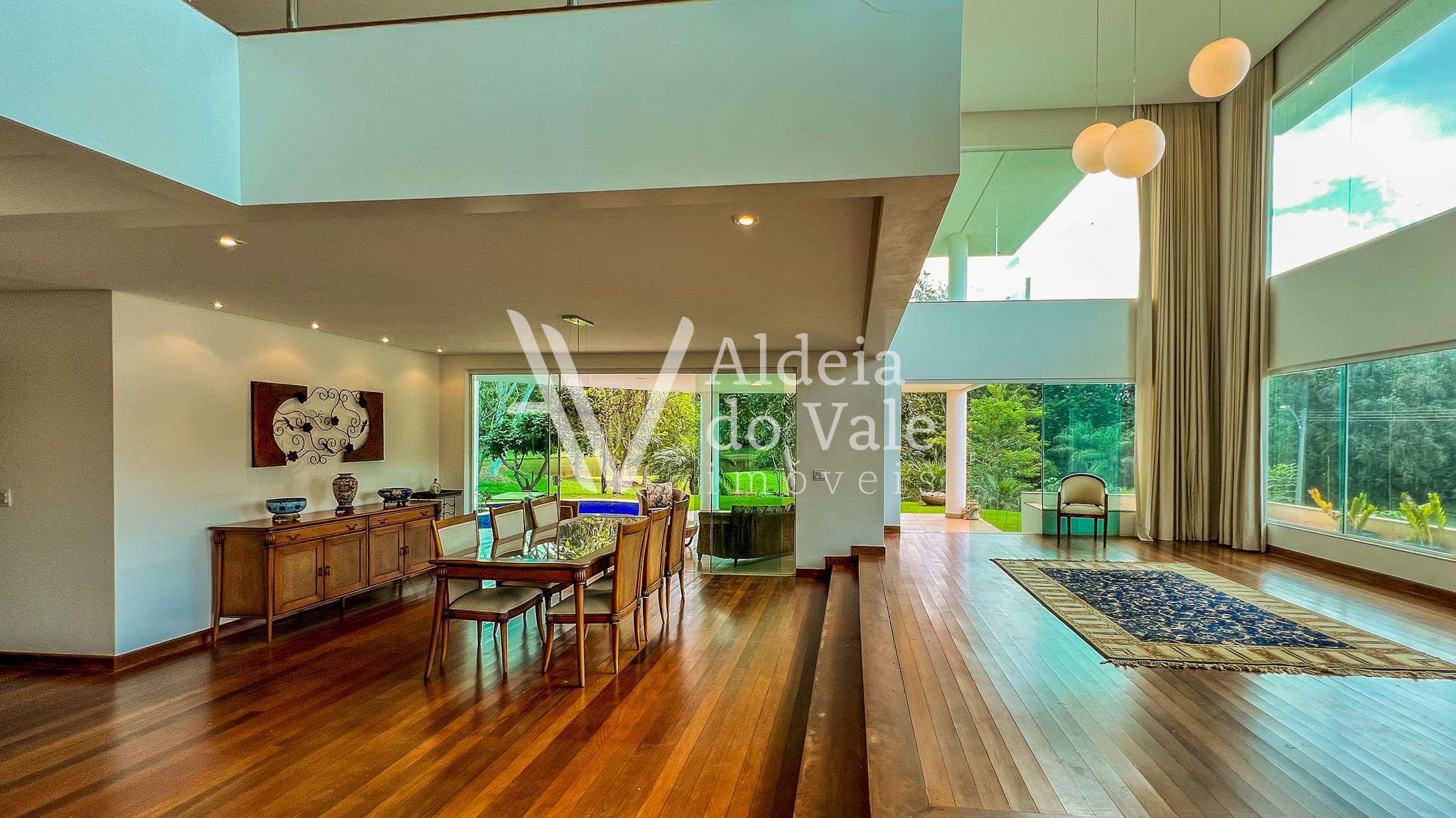 Todo o piso superior da casa é rico em varandas, o que proporciona uma vista ampla do terreno e do condomínio. Possui 5 suítes, sendo uma Master (com banheira e closet), duas suítes com ambiente de escritório, e uma suíte no andar térreo.