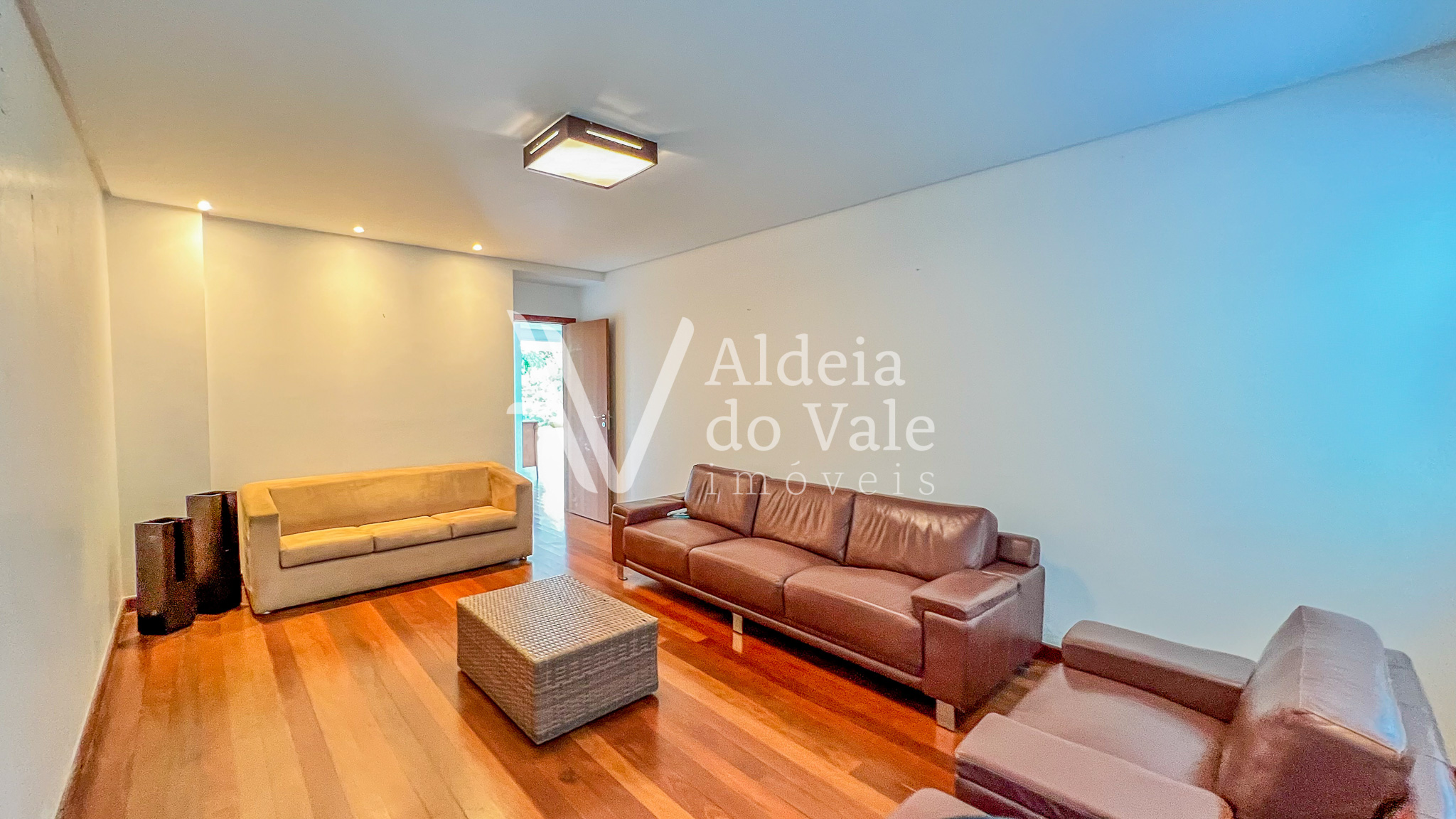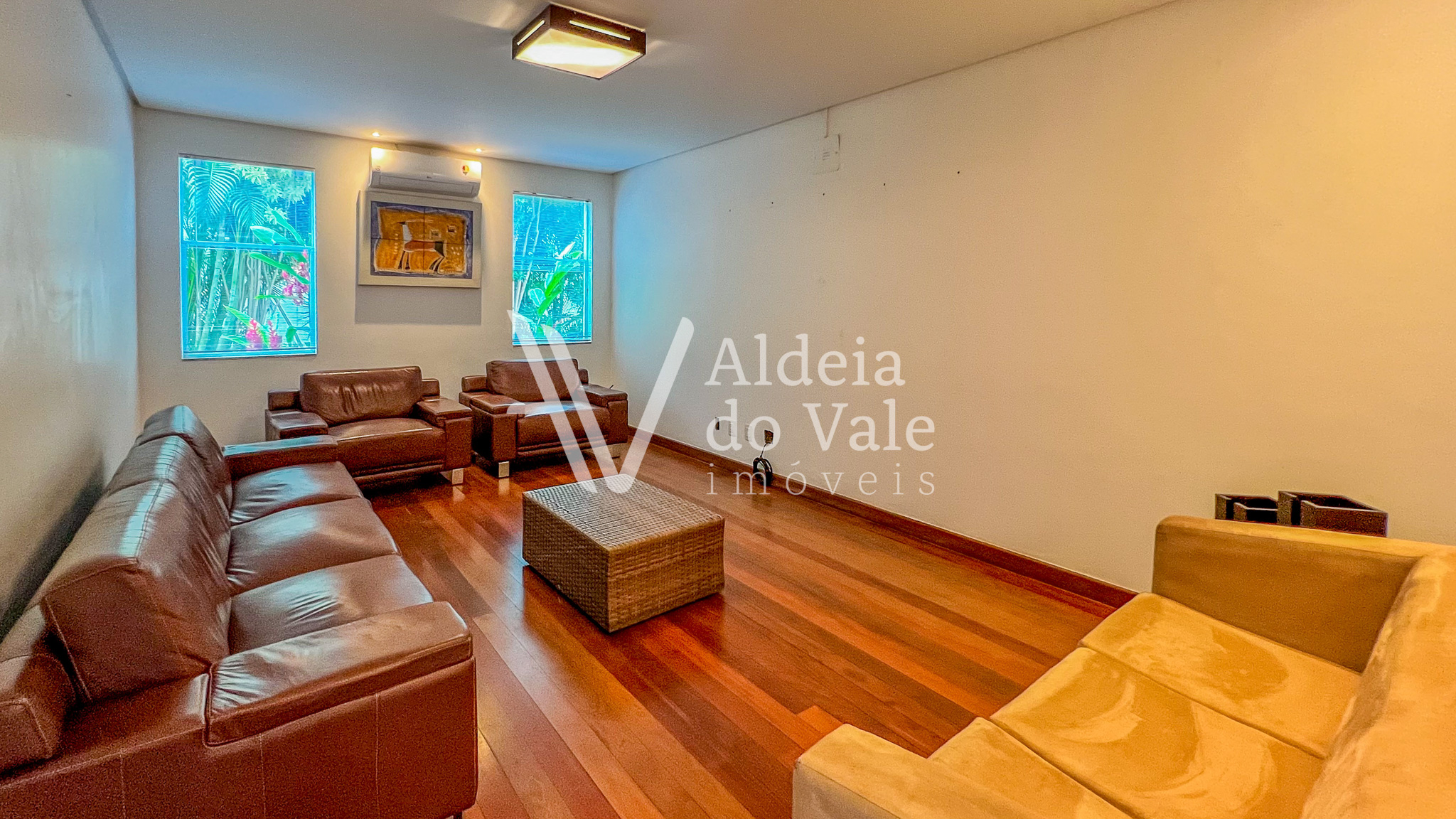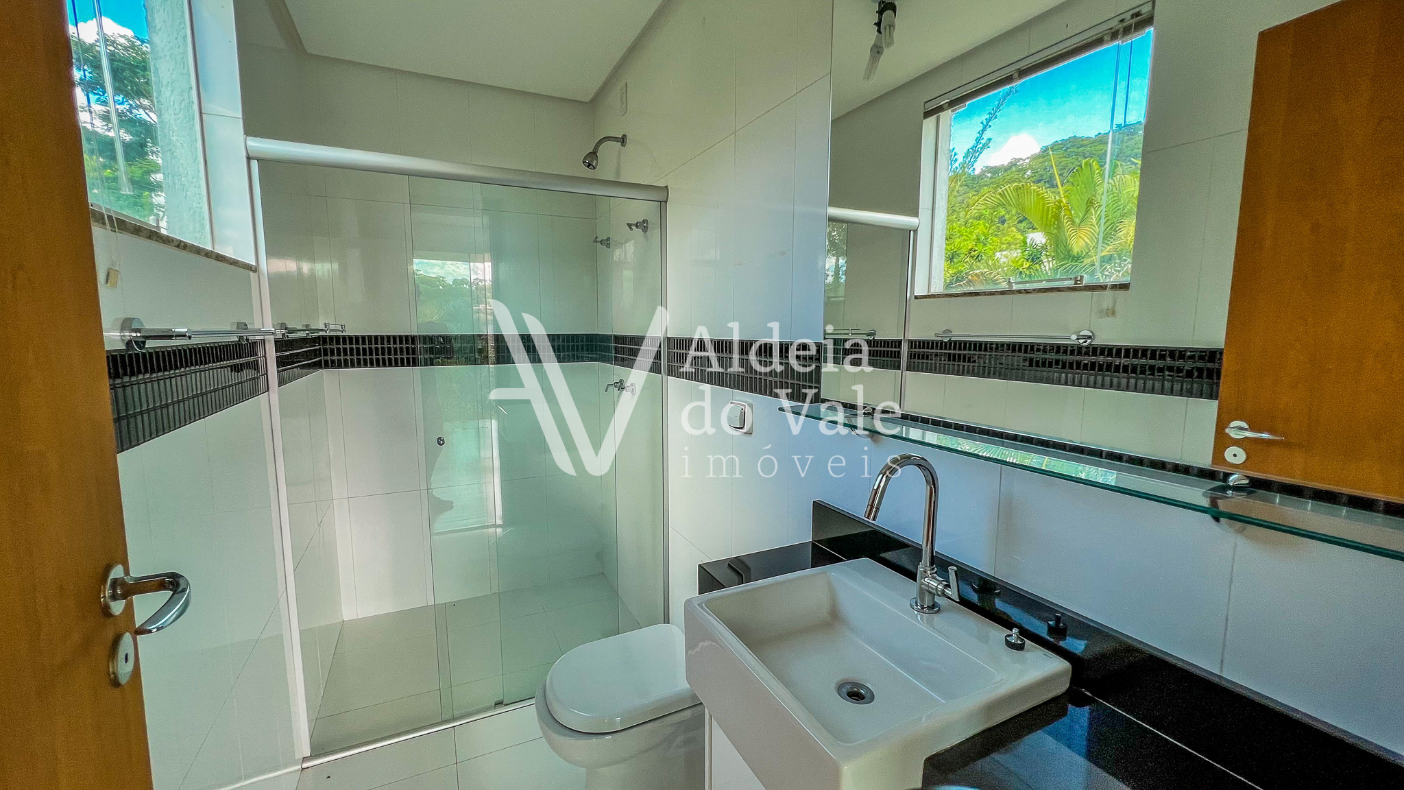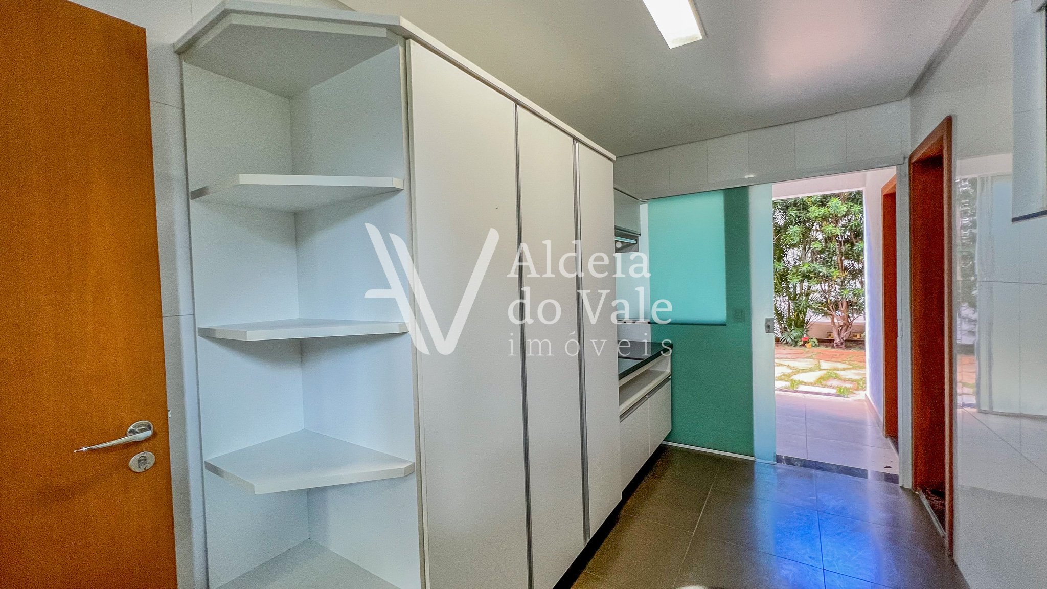 Todo o piso superior da casa é rico em varandas, o que proporciona uma vista ampla do terreno e do condomínio. Possui 5 suítes, sendo uma Master (com banheira e closet), duas suítes com ambiente de escritório, e uma suíte no andar térreo.
