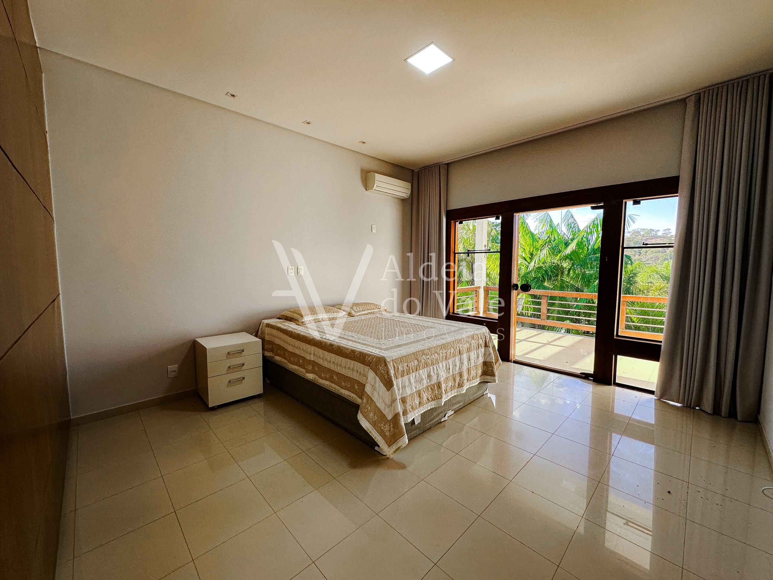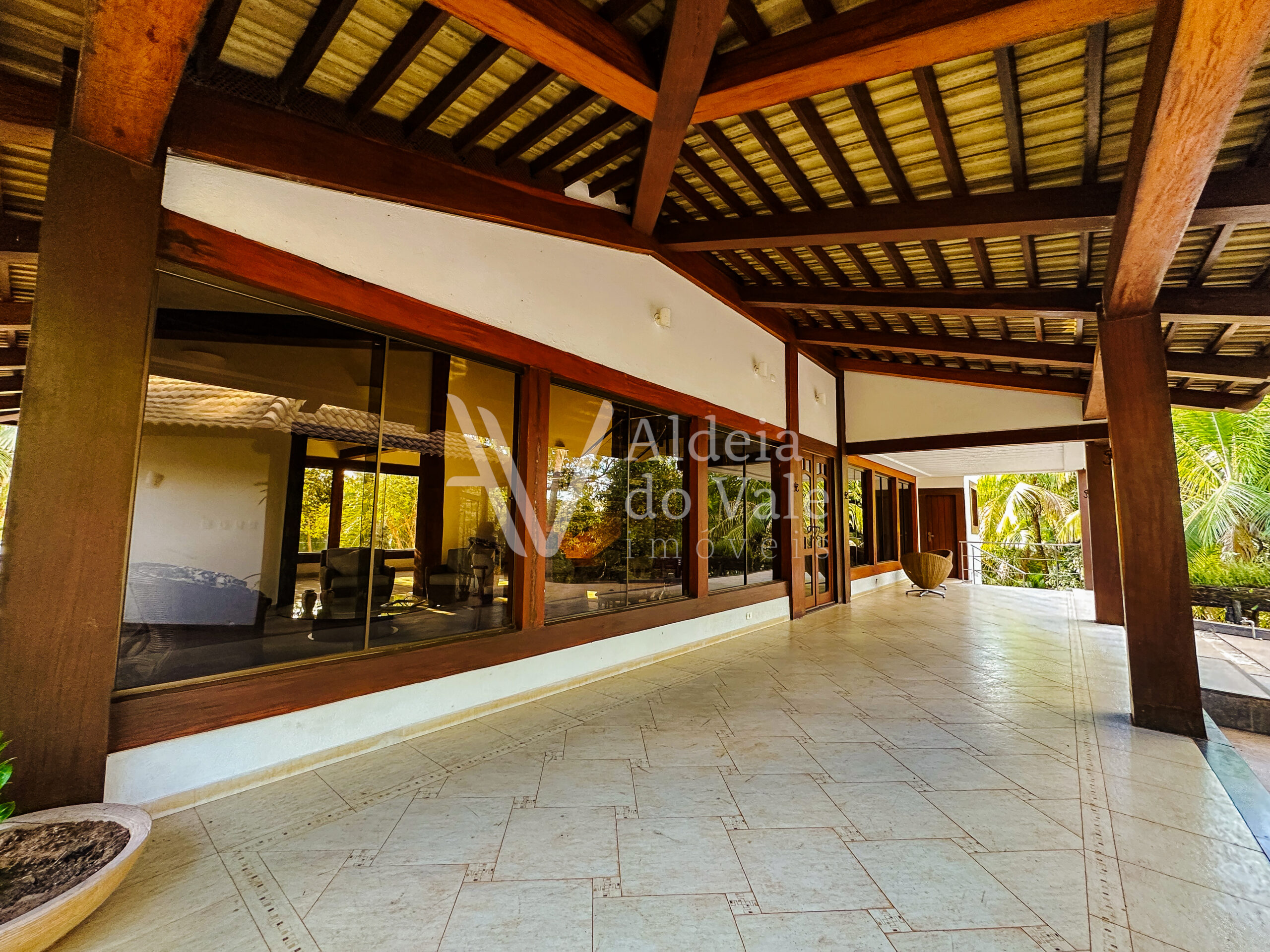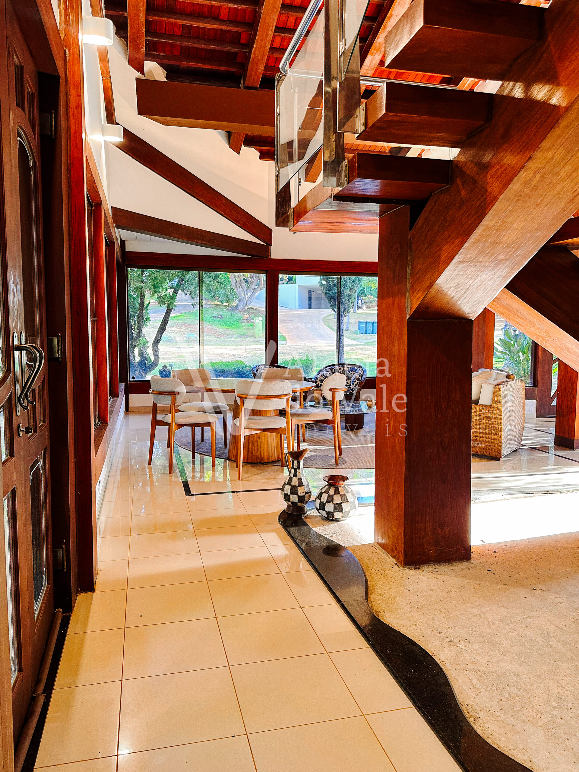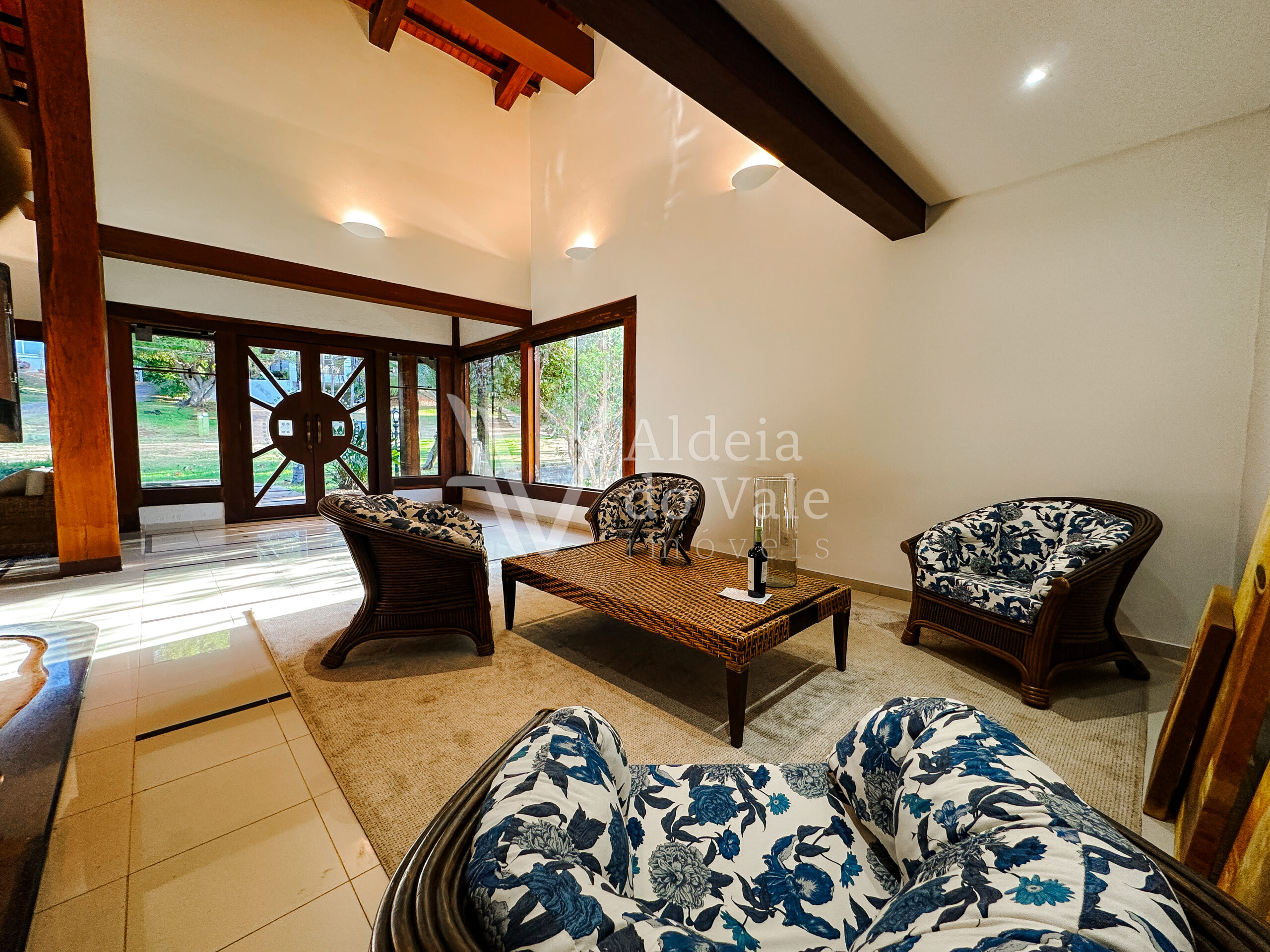 Com madeira, no estilo rústico, super aconchegante, possui uma sala lindíssima, muito bem iluminada, com pé-direito duplo.