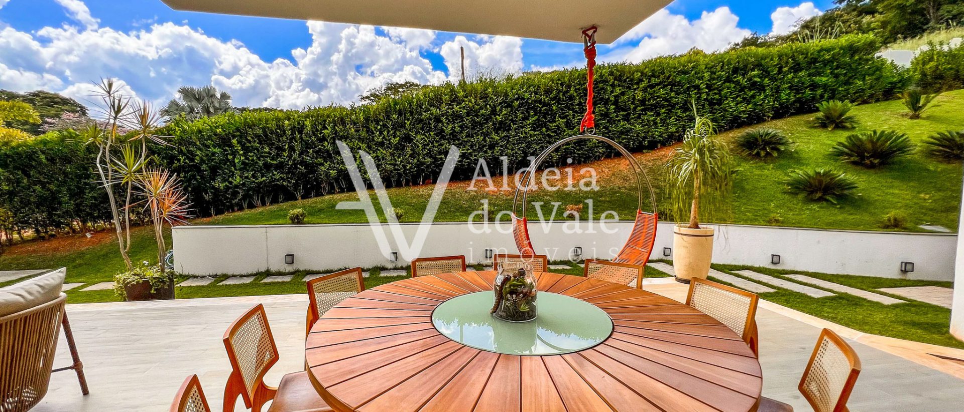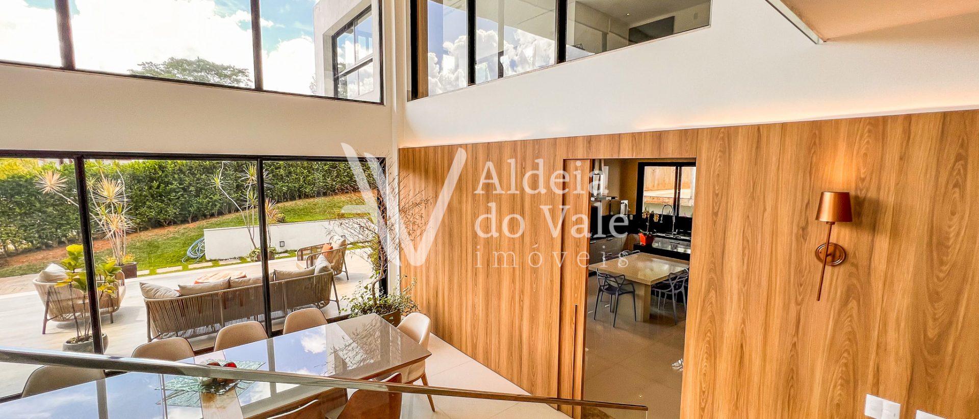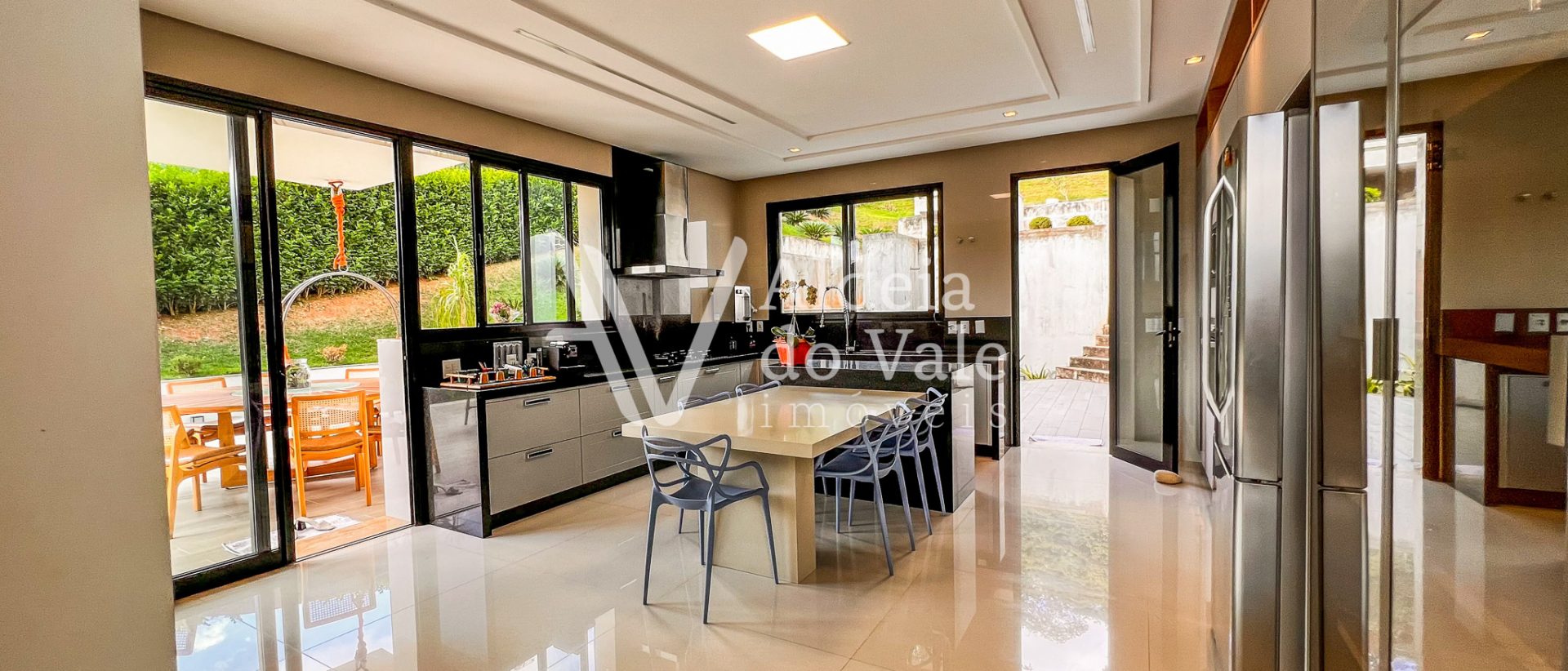 Imóvel com fino acabamento, garagem ampla com portão automatizado, escaninho, lindo paisagismo e ótima localização na parte alta do Aldeia do Vale.