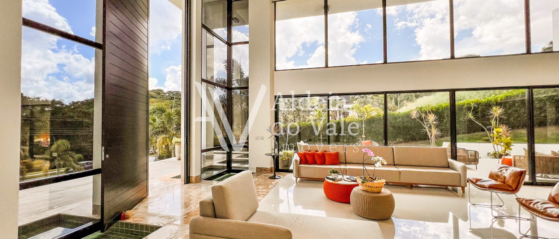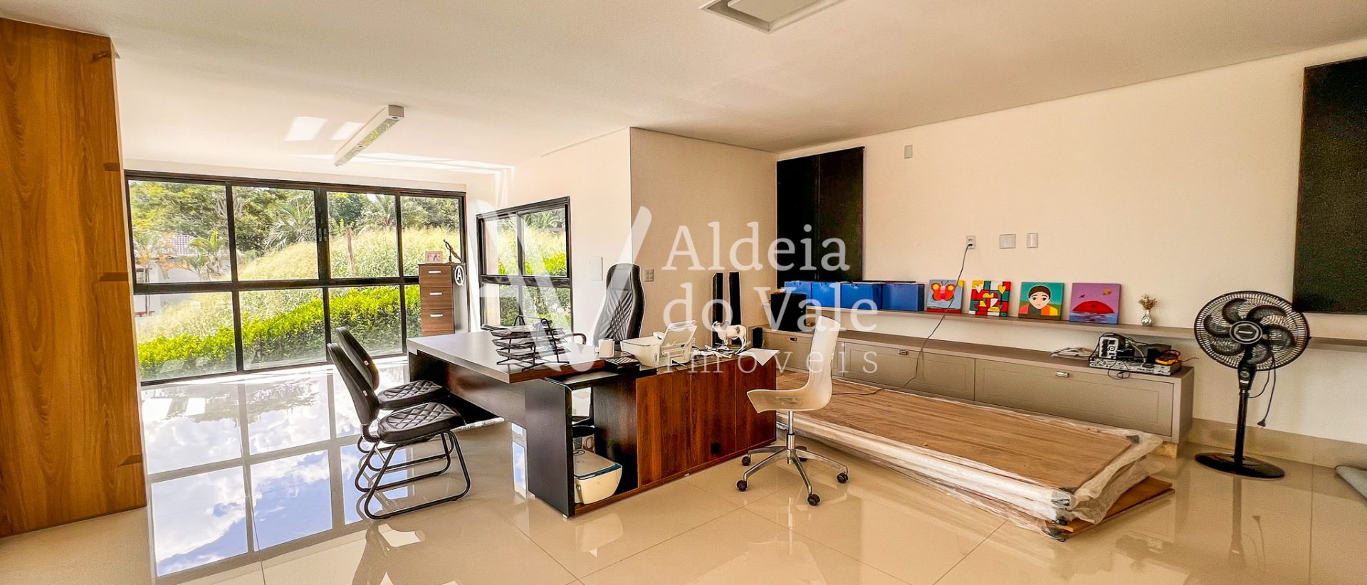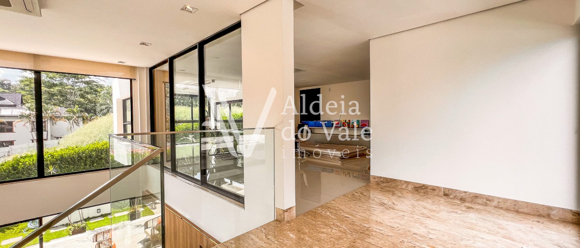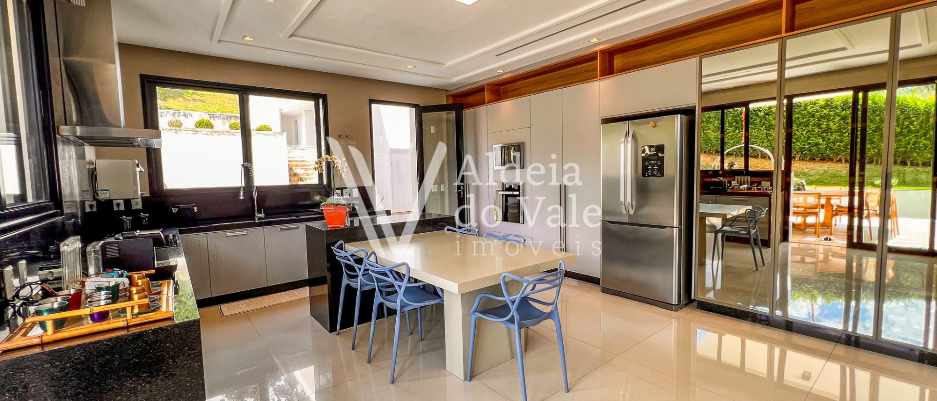 Imóvel com fino acabamento, garagem ampla com portão automatizado, escaninho, lindo paisagismo e ótima localização na parte alta do Aldeia do Vale.