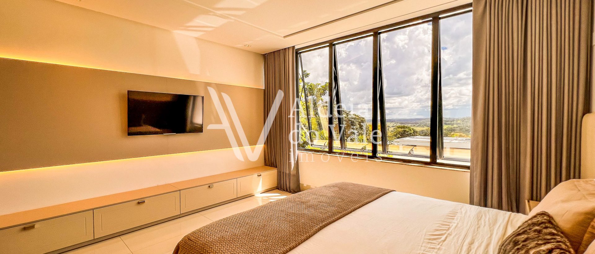 4 suítes plenas sendo 1 master com closet, hidromassagem, chuveiro duplo, bancada com cuba dupla esculpida na pedra bege baia e janela com linda vista definitiva para o condomínio, roupeiro no corredor, todas suítes amplas, montadas em armários Bontempo e climatizadas.
